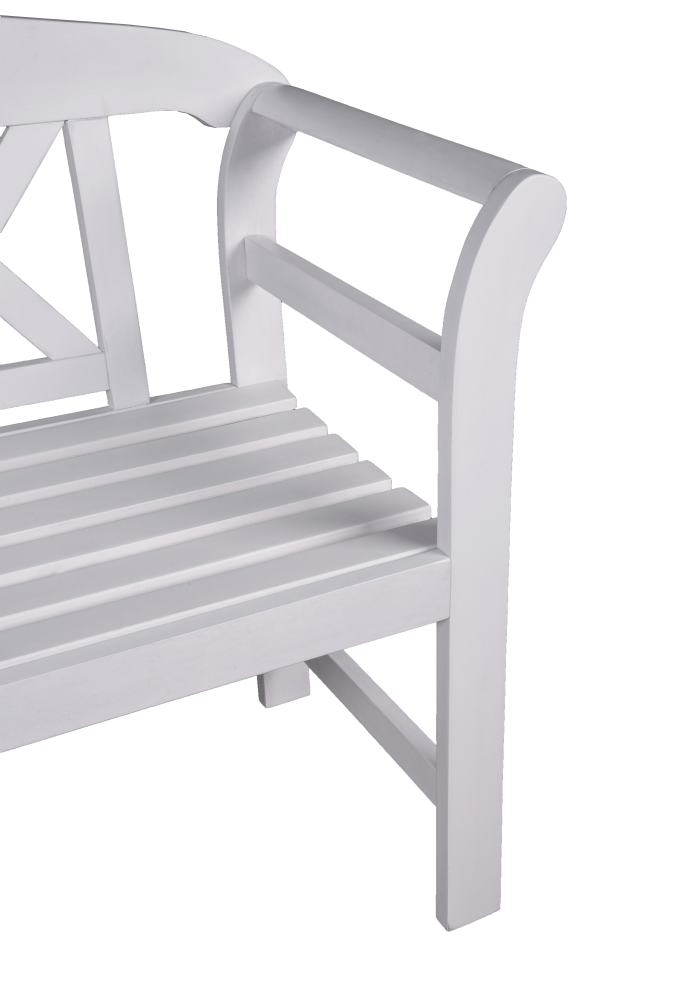 Der weiß-gestrichene Eukalyptus verleiht der Bank eine moderne Ausstrahlung, die jeden Garten aufwertet.