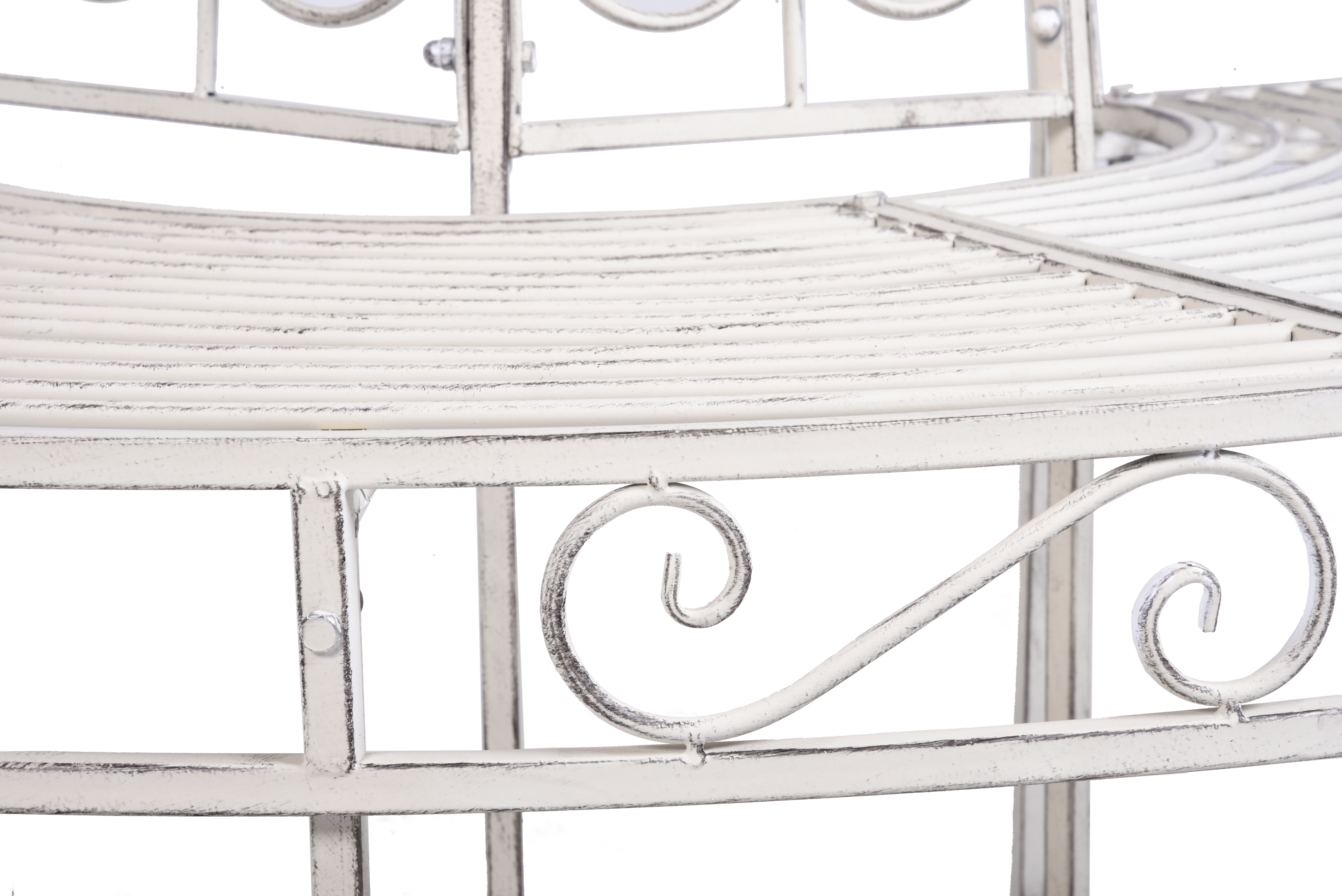 Die antik-weiße Pulverbeschichtung verleiht der Baumbank-Halbkreis VARDA ein klassisches und elegantes Erscheinungsbild, das perfekt in Gärten und Außenbereiche passt. Sie verleiht Ihrem Garten eine romantische Atmosphäre und einen Hauch von Vintage-Flair.