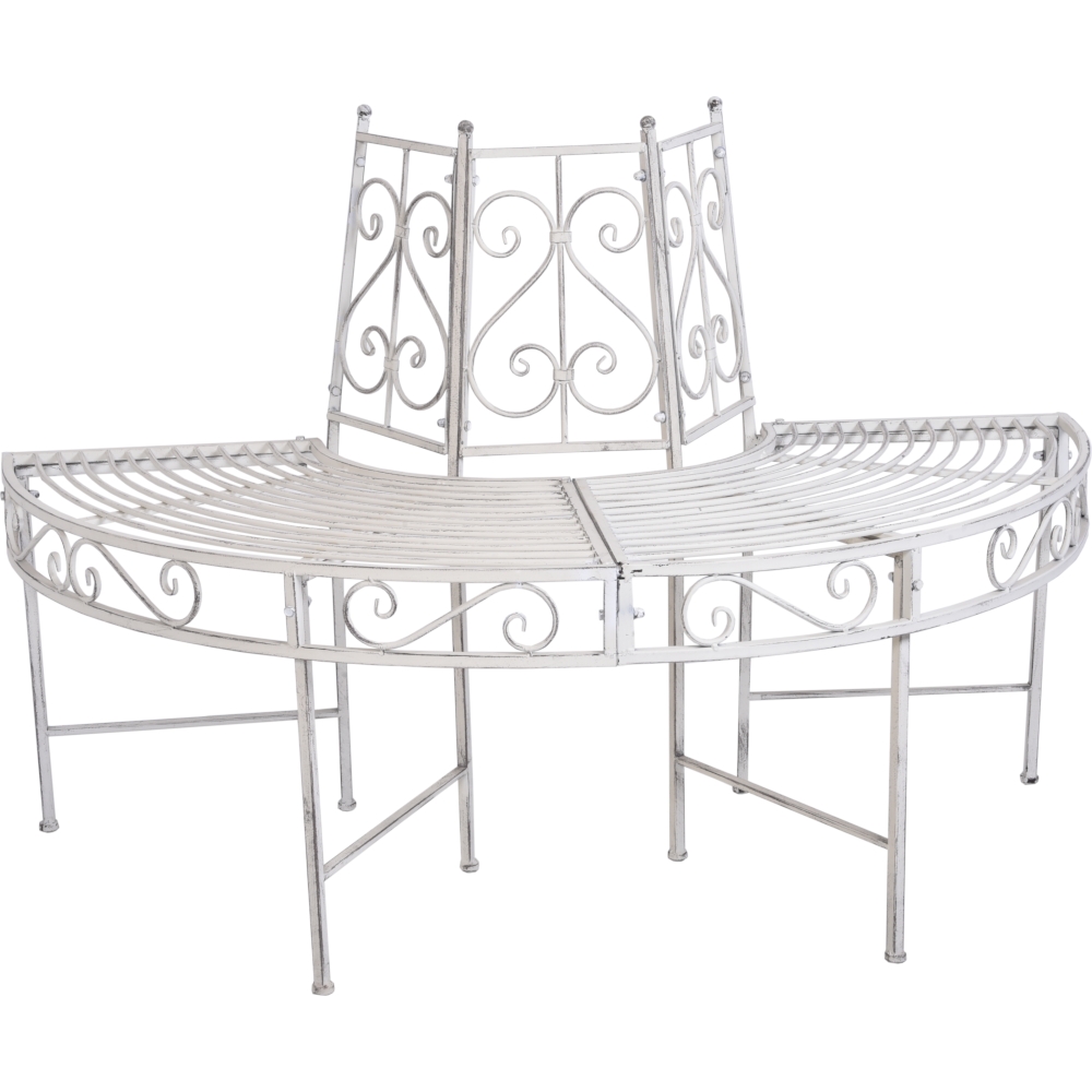 Diese halbkreisförmige Baumbank ist nicht nur ein gemütlicher Sitzplatz, sondern auch ein dekoratives Element, das um einen Baum herum platziert werden kann. Mit ihrer antik-weißen Stahlkonstruktion wird die Baumbank-Halbkreis VARDA sicherlich zum Blickfang in Ihrem Garten und bietet einen einladenden Ort zum Verweilen und Entspannen im Freien.