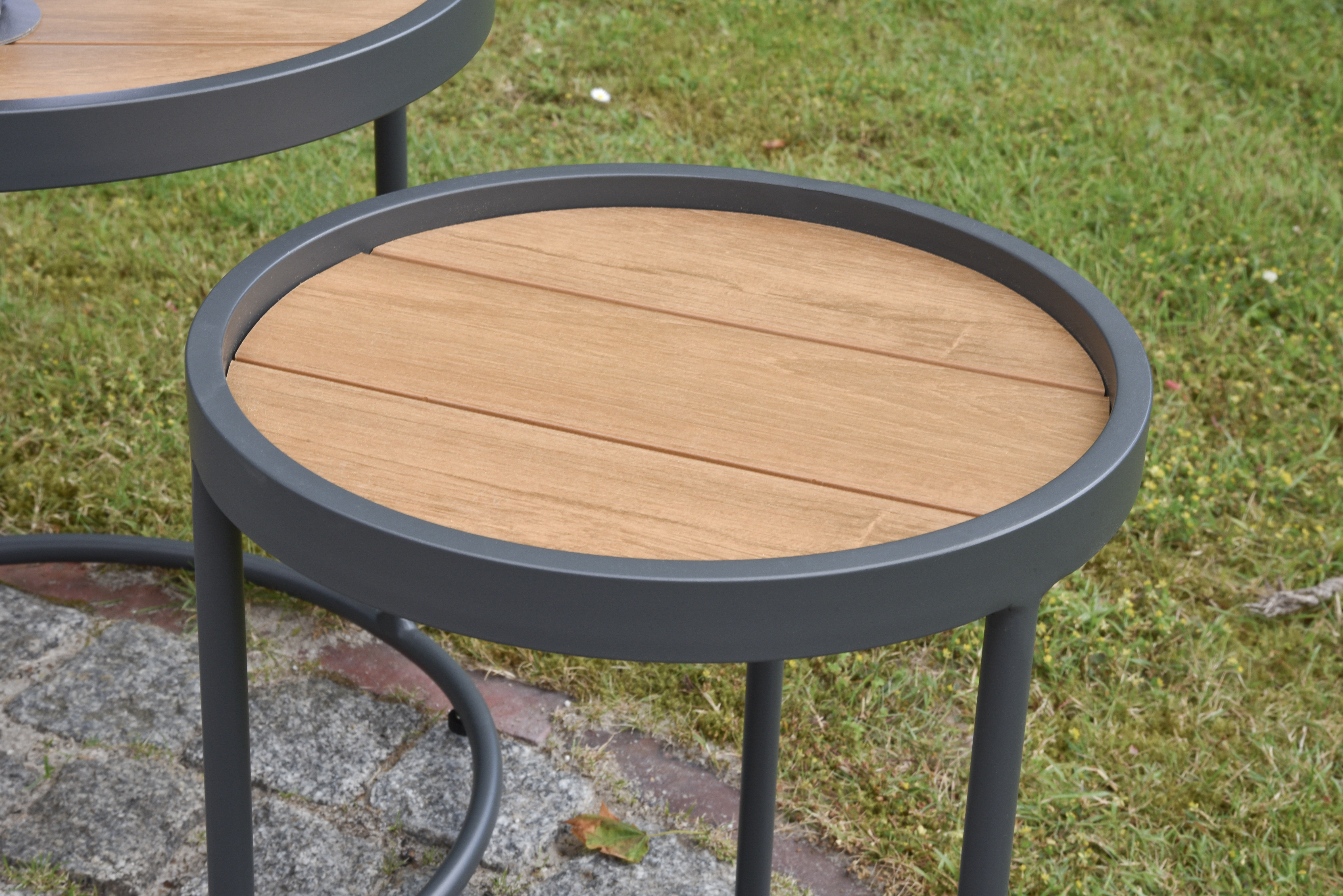 Der Beistelltisch SILEA 2er-Set ist die perfekte Ergänzung für Ihre Terrasse, Ihren Garten oder andere Outdoor-Bereiche und fügt sich nahtlos in verschiedene Umgebungen ein.
