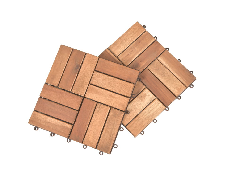 Mit dem 11er Set Bodenfliesen JEFFERSON können Sie problemlos Flächen in Ihrem Zuhause oder Garten verschönern und gleichzeitig von den Vorteilen des Akazienholzes profitieren.
