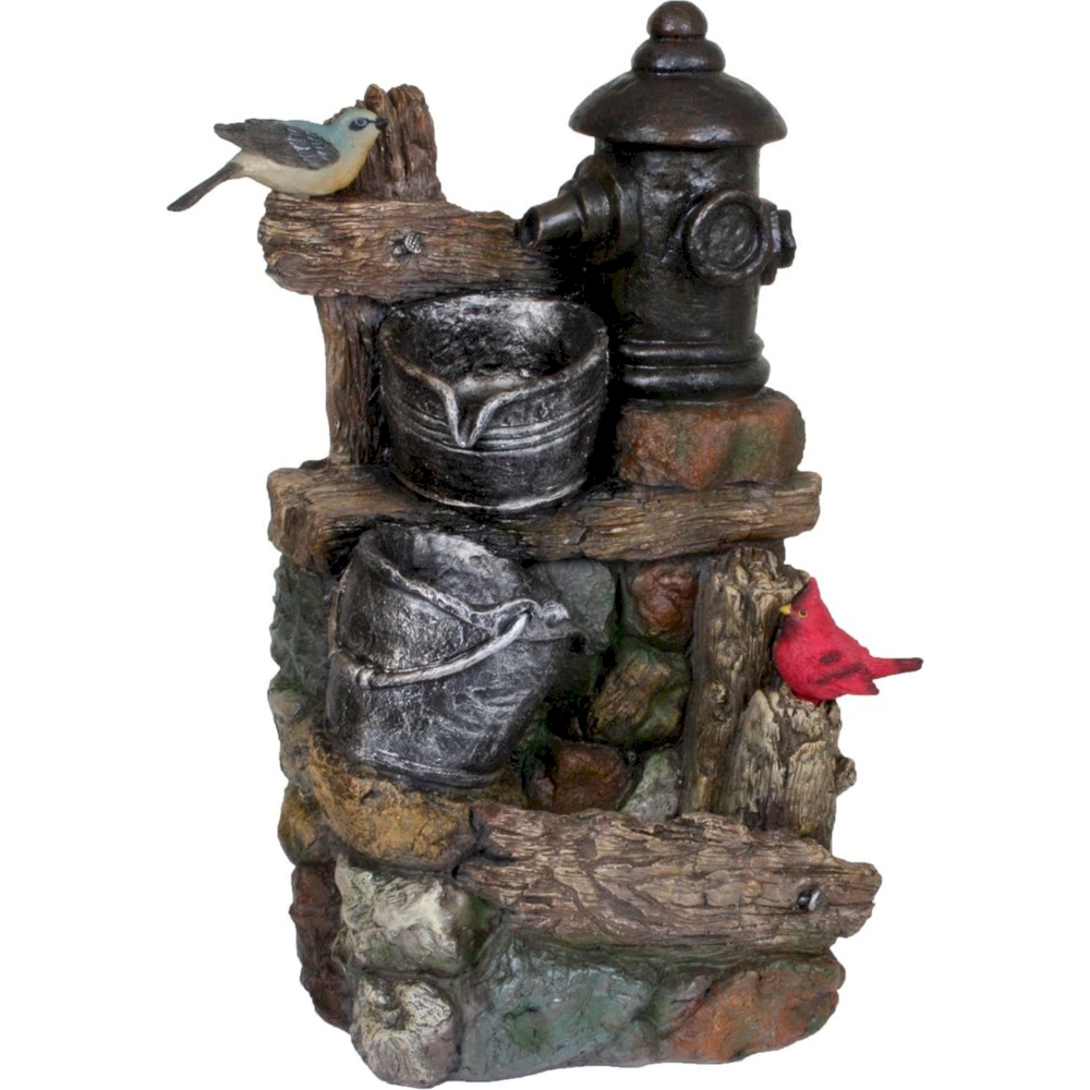 Hergestellt aus strapazierfähigem Polyresin, vereint er natürliche Elemente zu einem bezaubernden Wasserspiel.