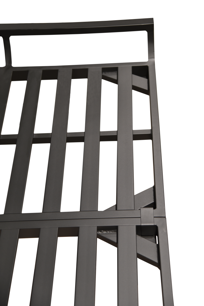 Hergestellt aus pulverbeschichtetem dunkelgrauem Aluminium und mit strapazierfähigem grauem Polyestergewebe bietet sie eine robuste Konstruktion, die den Elementen standhält.
