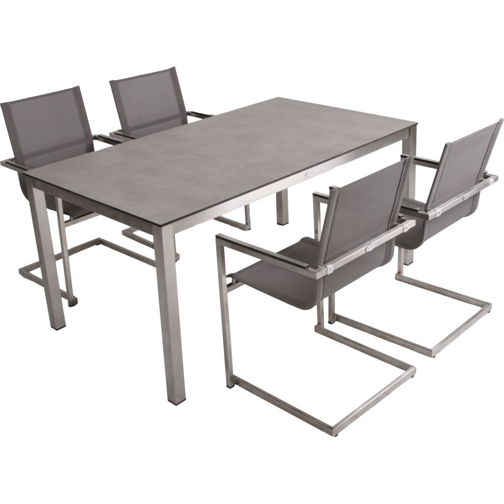 Der Freischwinger SIENNA ist die perfekte Wahl für jeden, der auf der Suche nach einem eleganten und bequemen Sitzplatz ist. Hergestellt aus hochwertigem Edelstahl und strapazierfähigem Kunststoffgewebe, bieten diese Stühle eine robuste und dennoch leichte Konstruktion.