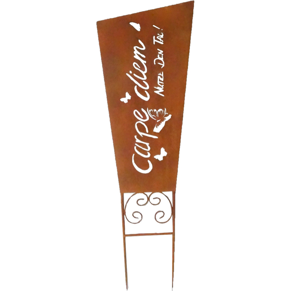 Unser Gartenschild "Carpe Diem" ist ein inspirierendes und dekoratives Element für Ihren Garten. Das Schild ist aus Eisen gefertigt und verfügt über eine Rost-Optik, die ihm ein antikes und naturnahes Aussehen verleiht.