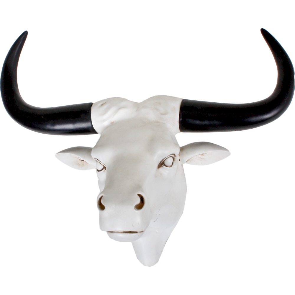 Das Geweih eines Büffels aus Polyresin in Weiß mit schwarzen Hörnern ist eine eindrucksvolle und stilvolle Innendekoration.
