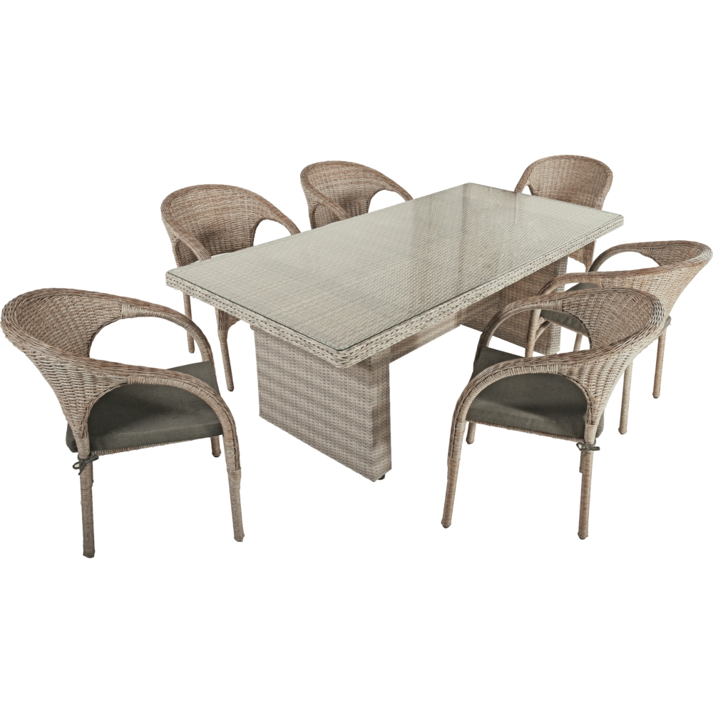 Der Glastisch DIJON ist eine elegante und moderne Ergänzung für Ihren Außenbereich. Hergestellt aus hochwertigem grauen Aluminium und sesamgrauem Kunststoffgeflecht, strahlt dieser Tisch Qualität und Stil aus. Die klare Glastischplatte verleiht ihm ein zeitloses Finish und ist perfekt, um Ihre Getränke, Snacks und Dekorationen sicher abzustellen.