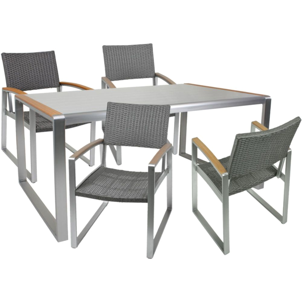 Die Gruppe AVA 5tlg. ist die perfekte Wahl, um Ihren Innen- oder Außenbereich stilvoll und komfortabel zu gestalten. Dieses Set besteht aus einem rechteckigen Tisch und vier Stühlen mit Armlehnen, die mit hochwertigen Materialien und einem modernen Design gefertigt sind.