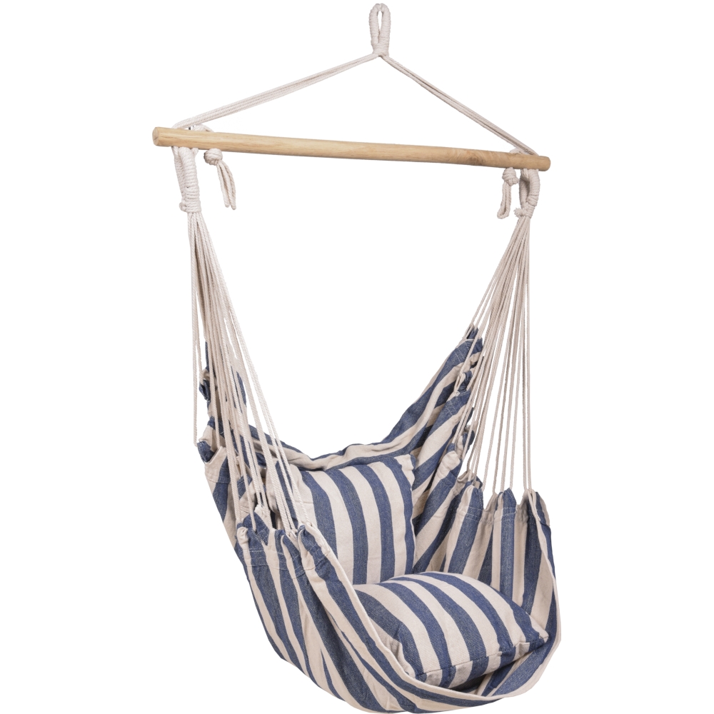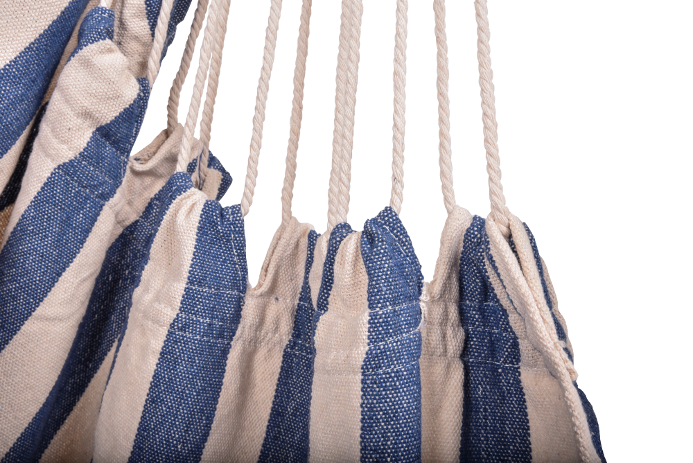 Unser Hängesessel TOBAGO ist die perfekte Ergänzung für Ihr Zuhause, um entspannte Momente im Freien oder im Innenbereich zu genießen. Dieser bequeme Hängesessel besteht aus hochwertiger Scheinkastanie und ist mit einem blau-weißen Polyestergeflecht umhüllt. Das Sitzkissen ist aus Baumwolle gefertigt und sorgt für zusätzlichen Komfort.