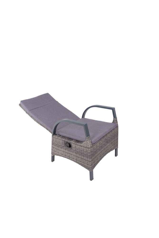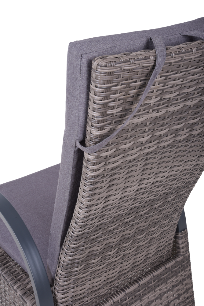 Hergestellt aus hochwertigem anthrazitfarbenem Aluminium und grauem Kunststoffgeflecht, vereint er modernes Design mit Langlebigkeit.