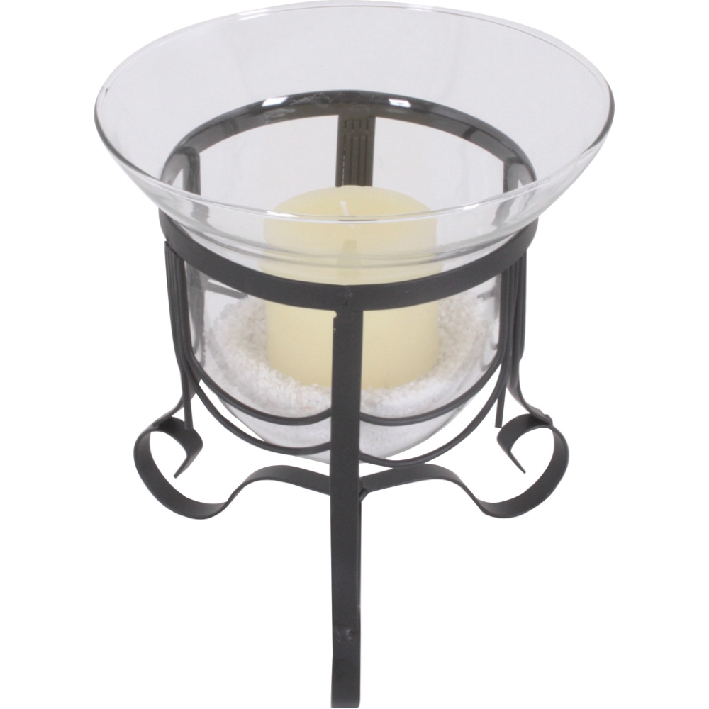 Unser Kerzenhalter aus schwarz lackiertem Stahl ist die perfekte Ergänzung für Ihr Zuhause oder jeden Anlass. Dieses elegante Design verfügt über einen robusten Metallständer, der mit einer stilvollen schwarzen Lackierung versehen ist. Im Zentrum des Halters befindet sich ein Glasbehälter, der für die sichere Aufnahme einer Kerze konzipiert ist. Wir liefern den Kerzenhalter komplett mit einer passenden Kerze und dekorativem Sand, um Ihre Umgebung zu verschönern.