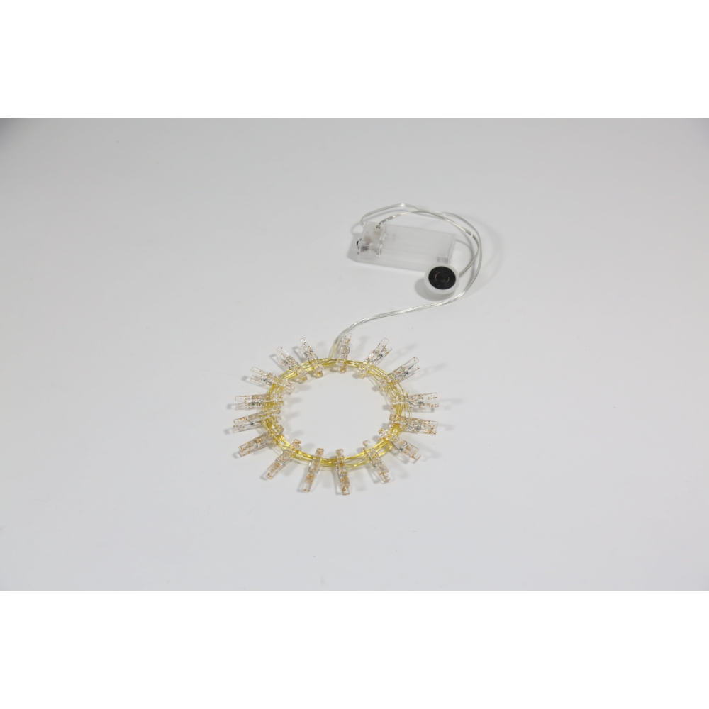 Unsere LED-Fotoclip-Lichterkette ist eine charmante Möglichkeit, Ihre Erinnerungen und Bilder in einem warmen Licht zu präsentieren. Hergestellt aus transparentem Kunststoff mit einem goldfarbigem Kupferdraht, verleiht sie jedem Raum eine romantische Atmosphäre. Die Kette ist mit insgesamt 16 warmweißen LEDs ausgestattet, die Ihre Fotos und Karten sanft beleuchten.