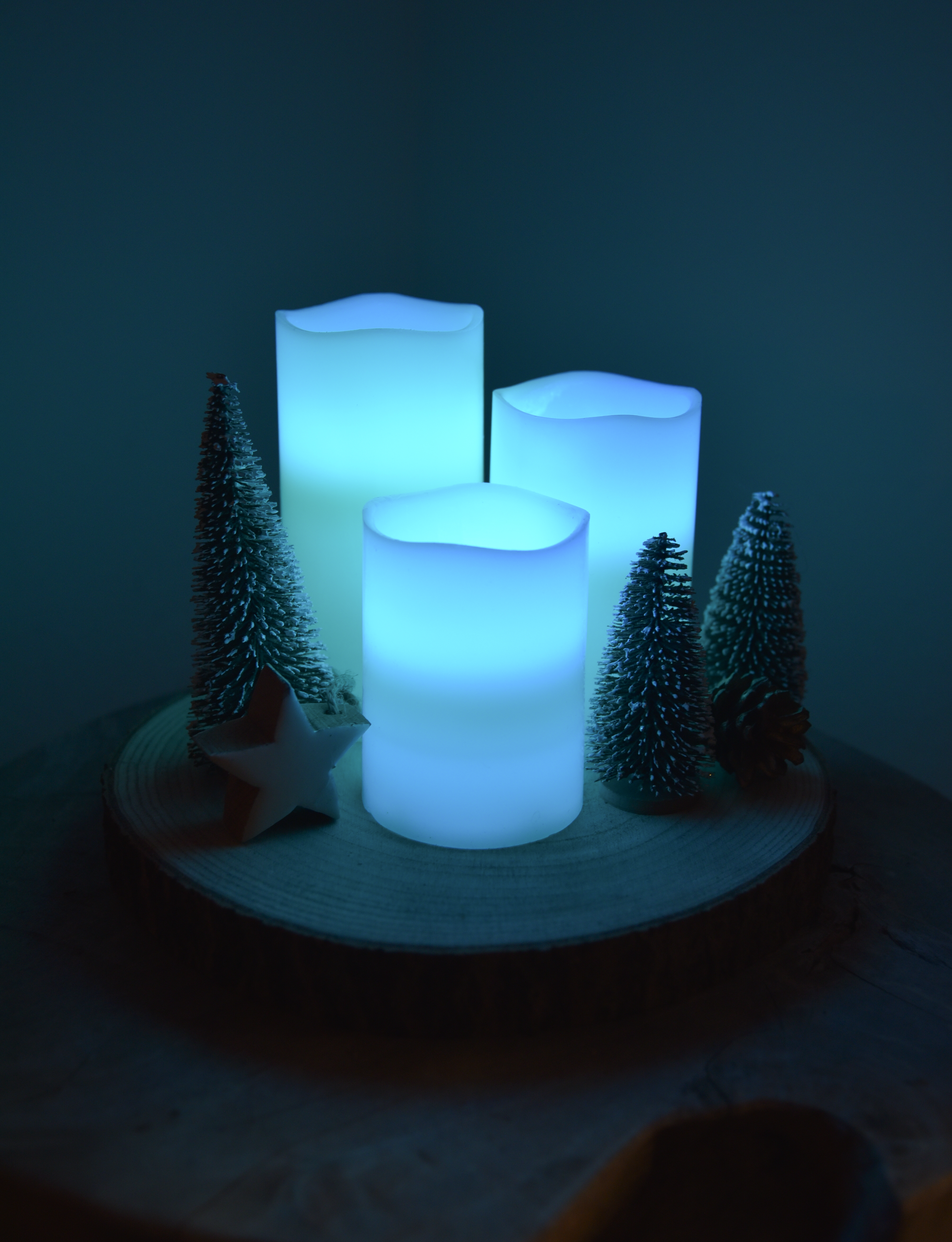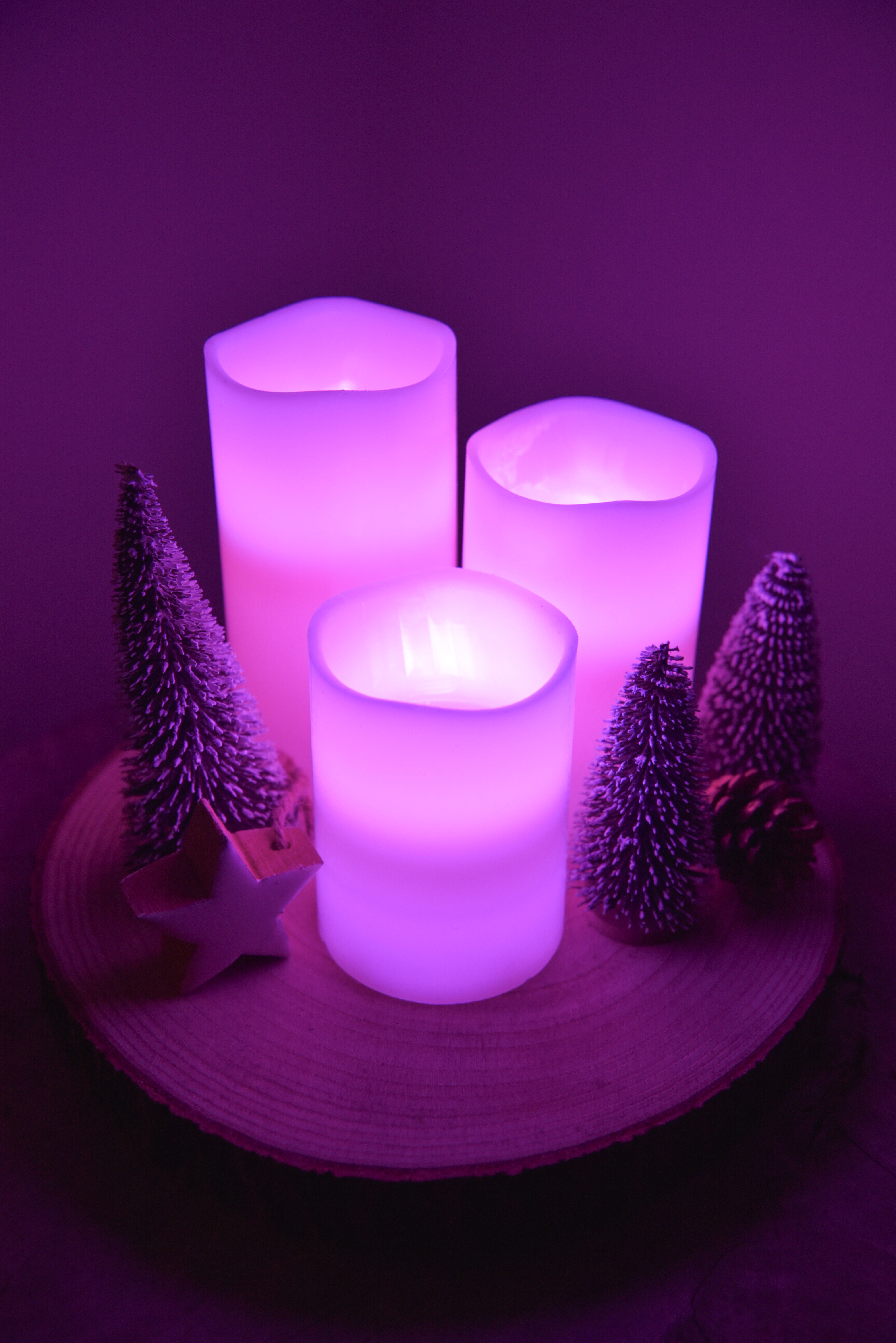 Unser Set von LED-Kerzen bietet eine vielfältige und stimmungsvolle Beleuchtung für Innenräume. Diese Kerzen bestehen aus hochwertigem Kunststoff, der die Optik von Paraffinwachs nachahmt, und sind in einem praktischen 3-teiligen Set erhältlich, wobei jede Kerze eine andere Farbe hat.
