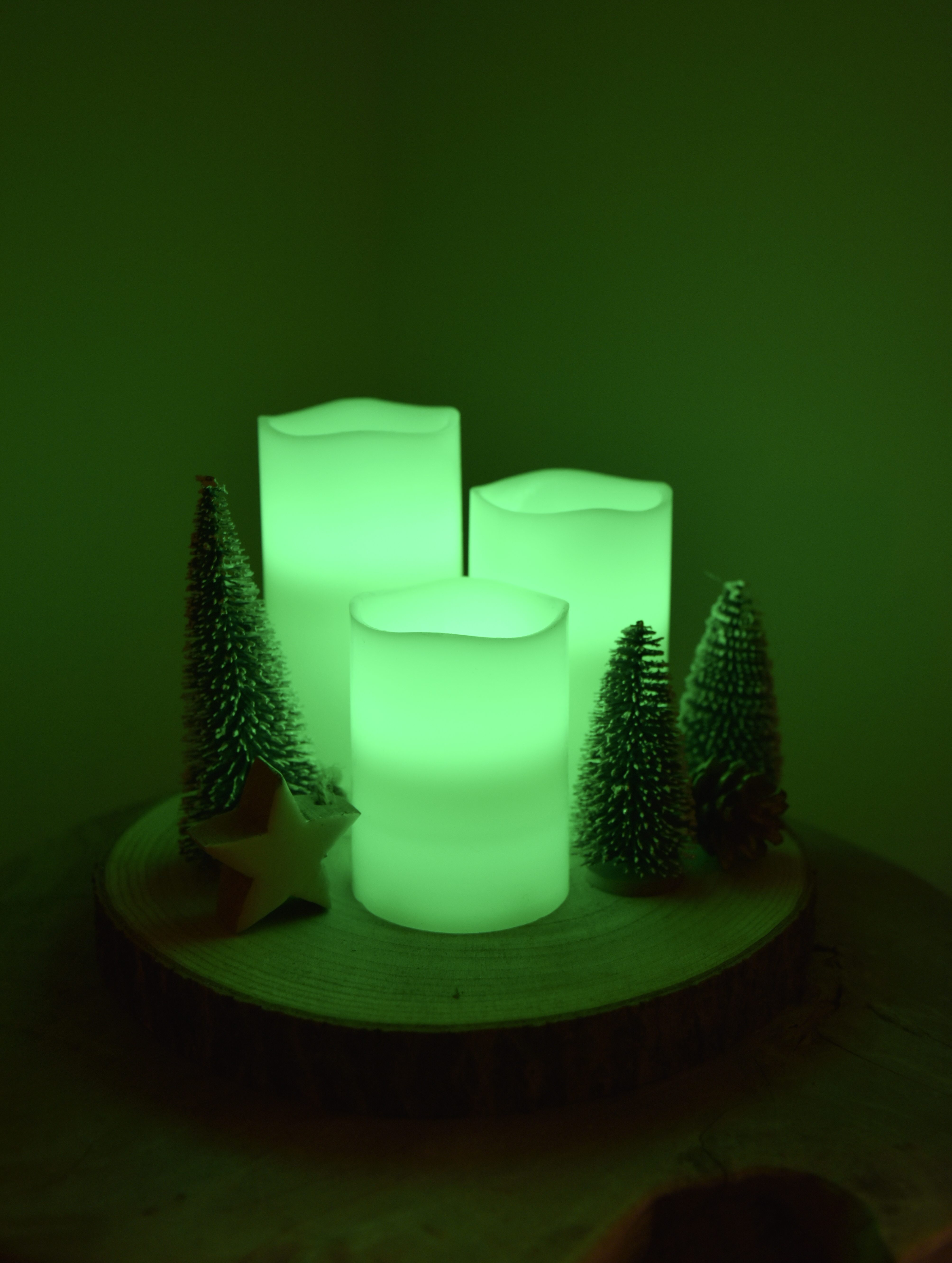 Die im Set enthaltene Fernbedienung ermöglicht es Ihnen, die Kerzen bequem ein- und auszuschalten, die Farben zu ändern und die Helligkeit anzupassen, ohne dass Sie die Kerzen berühren müssen.