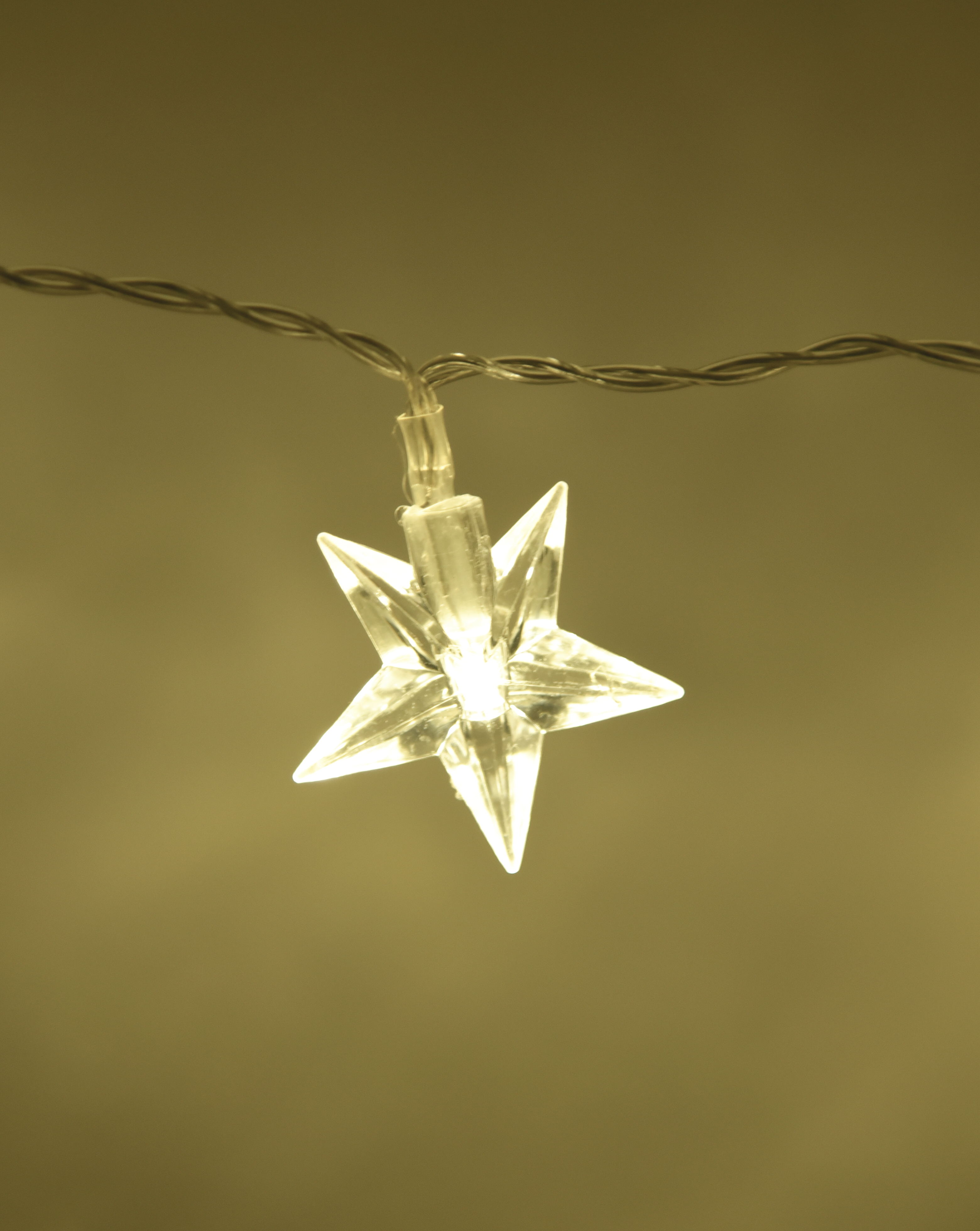 Unsere LED-Lichterkette "MINI-STERN" ist eine bezaubernde und stimmungsvolle Dekoration für Innenräume. Die Lichterkette besteht aus hochwertigem weißen Kunststoff und verfügt über insgesamt 30 warm-weiße LEDs, die eine sanfte und einladende Beleuchtung erzeugen.