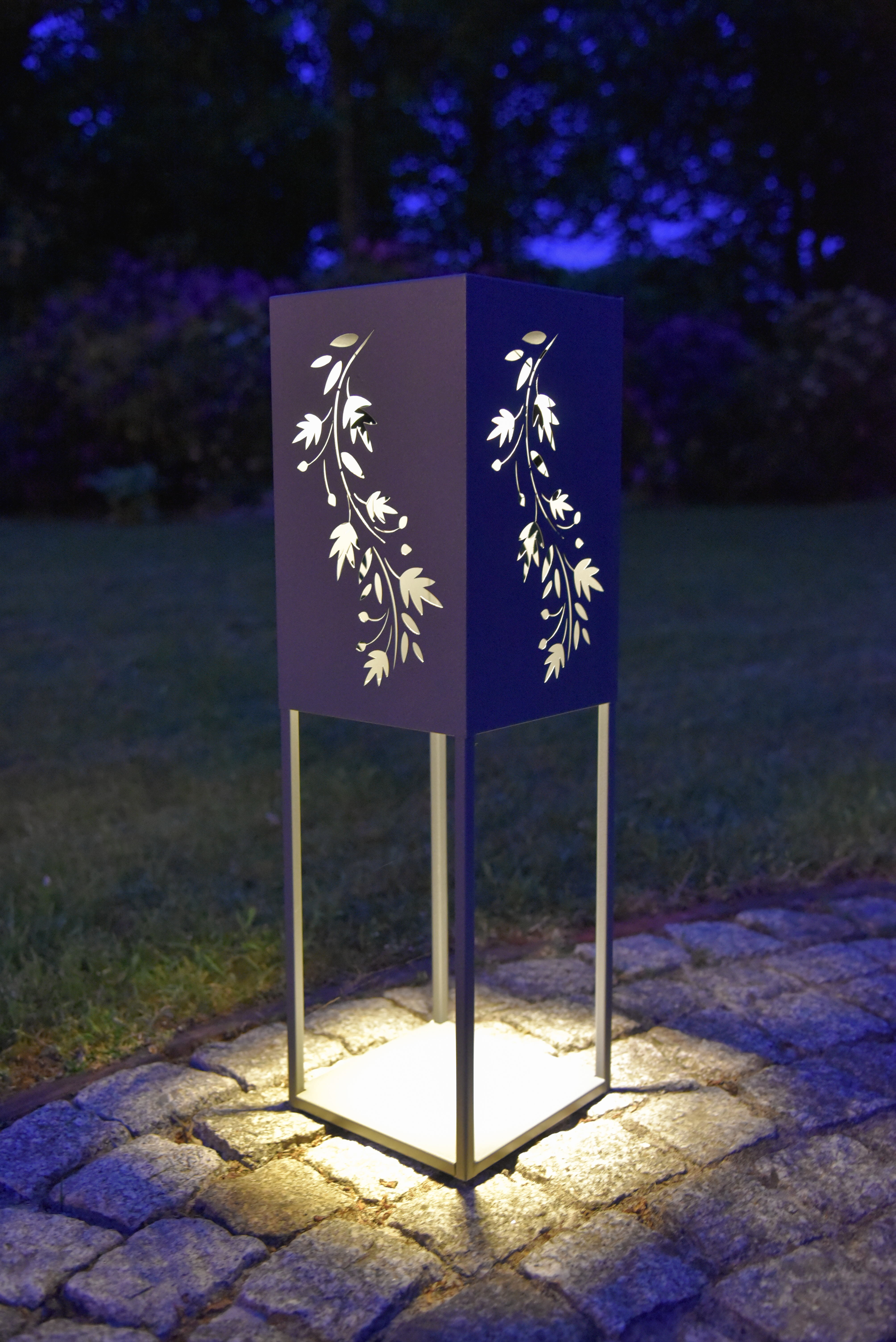 Die ZAYN Licht-Dekosäule verfügt über integrierte LED-Leuchten, die eine subtile und atmosphärische Beleuchtung erzeugen. Dies schafft eine einladende Atmosphäre und betont das moderne Design der Säule.