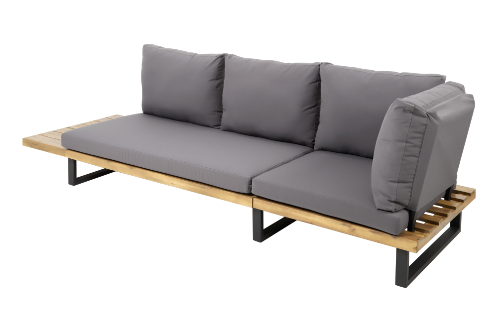Holz: Akazie , Oberfläche: geölt, Teak-Optik Textil:100% Polyester 180 g/m² , Farbe:grau