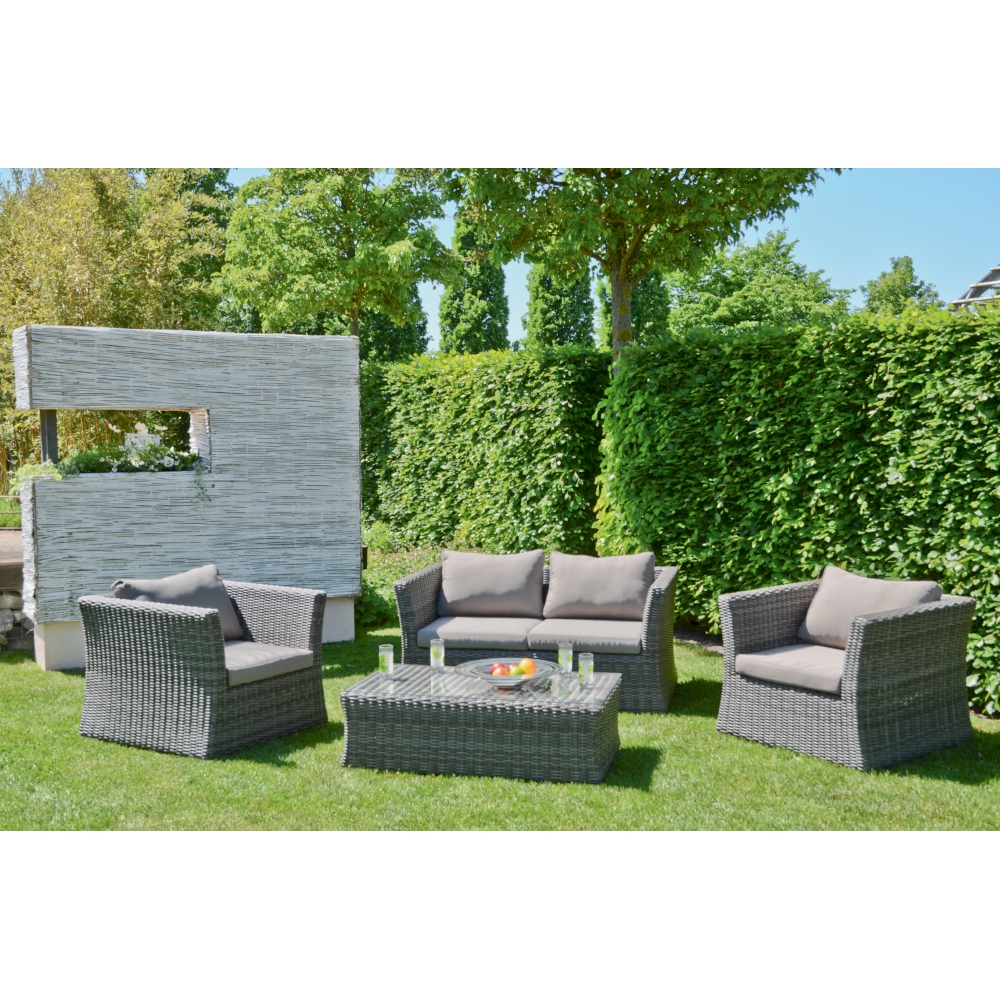 Mit der Lounge-Gruppe AVILA können Sie entspannte Stunden im Freien verbringen, sei es auf Ihrer Terrasse, in Ihrem Garten oder am Pool. Die Sitzmöbel sind bequem und einladend, und der Tisch bietet eine praktische Ablagefläche für Getränke und Snacks. Diese Gruppe ist die ideale Wahl, um Ihren Außenbereich stilvoll zu gestalten und gleichzeitig Komfort und Funktionalität zu bieten.