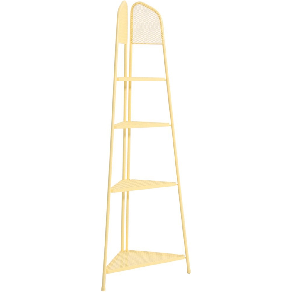 Die Farbe Gelb verleiht diesem Eckregal eine zeitlose Eleganz.