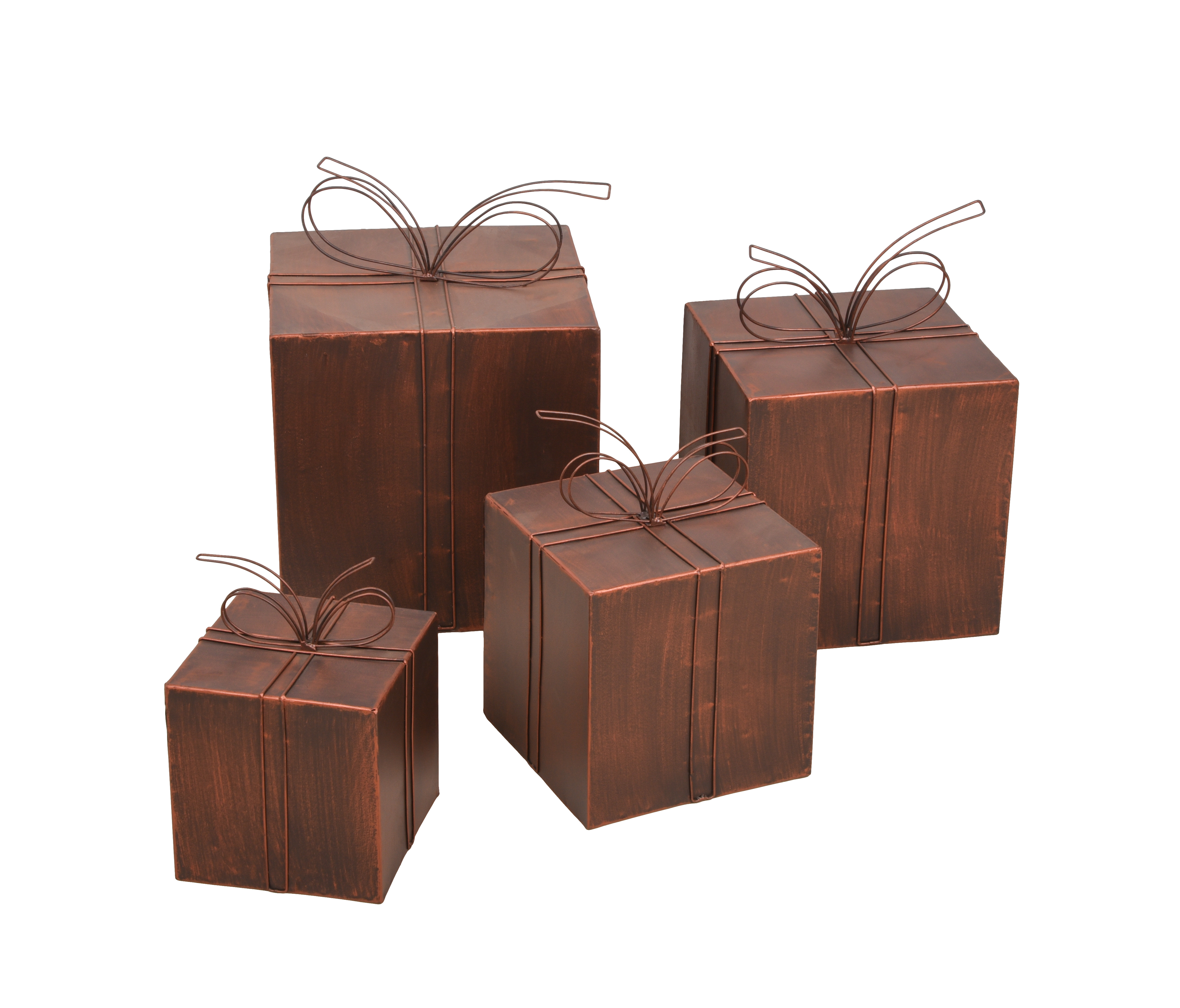 Verleihen Sie Ihrem Zuhause mit unserem wunderschönen Metall-Deko-Set in Rost-Optik einen Hauch von rustikaler Eleganz. Dieses Set besteht aus vier unterschiedlich großen Geschenkpaketen, die aus hochwertigem Metall gefertigt sind.