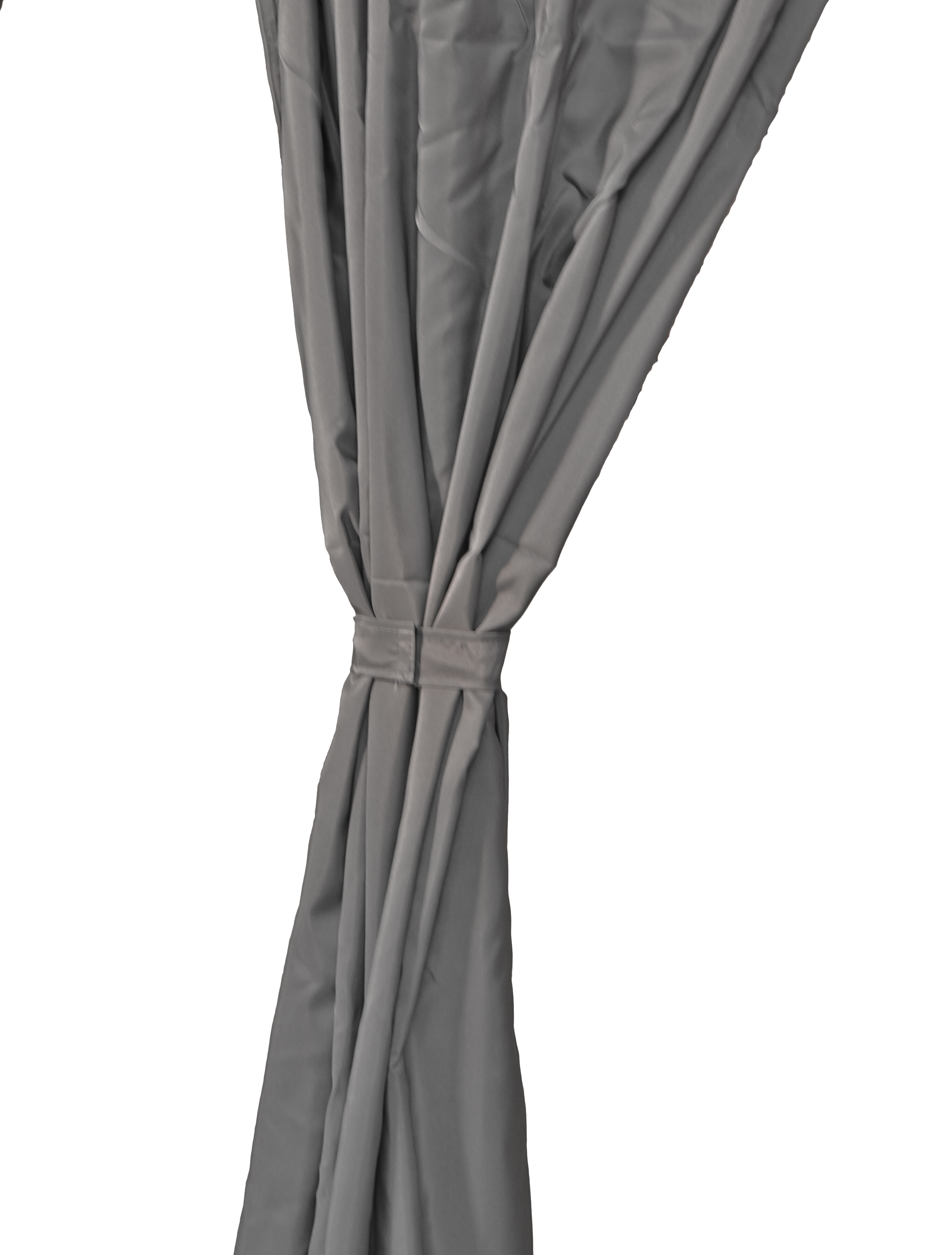 Das stabile Gestell aus Stahl sorgt für eine sichere Konstruktion, während das Dach und die Seitenschals aus strapazierfähigem Polyester in elegantem Anthrazitton perfekten Schutz vor Sonne und leichtem Regen bieten.