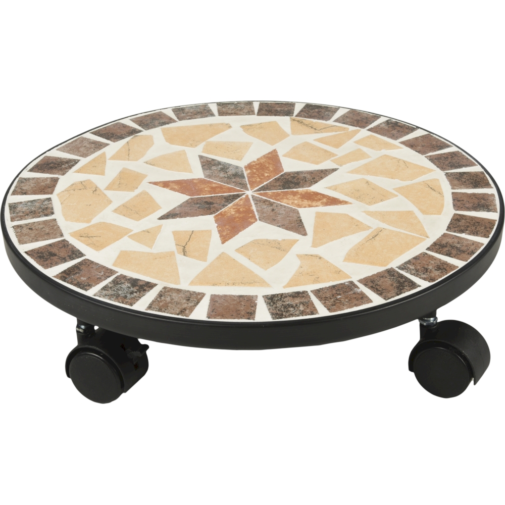 Die Mosaikkacheln verleihen dem Pflanzenroller ein ansprechendes und stilvolles Erscheinungsbild, das gut zu verschiedenen Gartenstilen passt.
