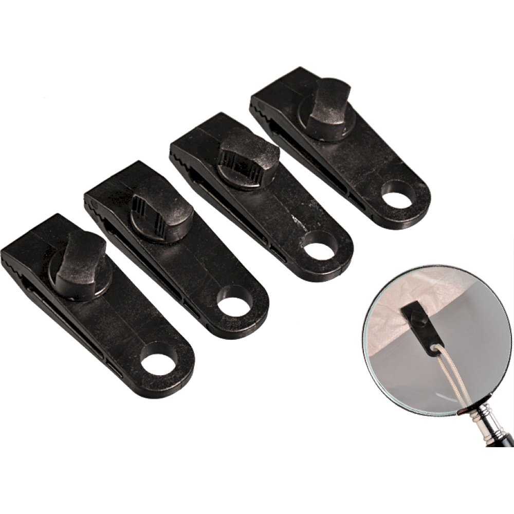Unser Planen-Clip-Set besteht aus 8 robusten Clips, die aus strapazierfähigem schwarzen Kunststoff Nylon gefertigt sind. Diese Clips sind ideal zum Befestigen von Planen, Zelten, Abdeckungen und anderen Materialien im Innen- und Außenbereich.