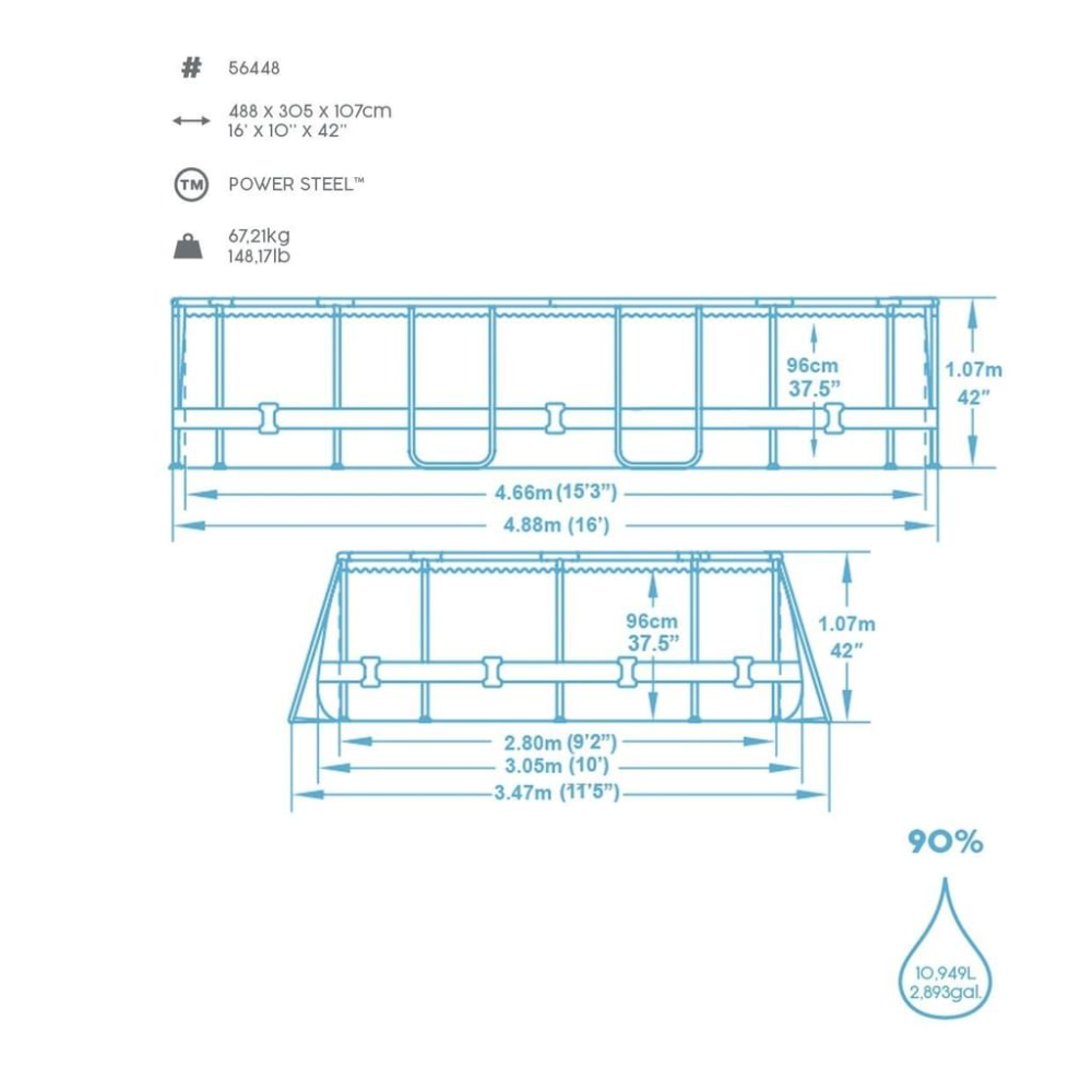 Bestway 56448, mit Filterpumpe, Sicherheitsleiter & Abdeckplane 488 x 305 x 107 cm
