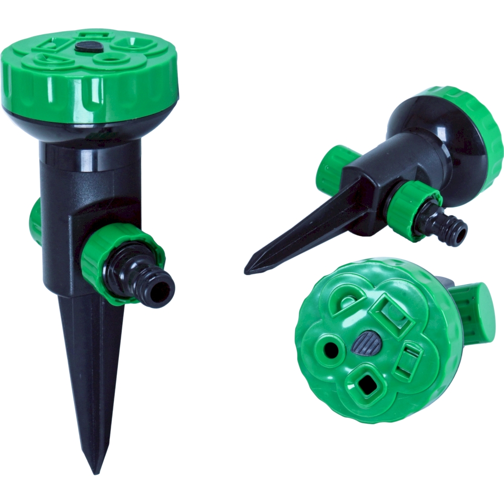Unser Rasensprenger mit fünf Sprinklerdüseneinstellungen ist ein vielseitiges und effektives Werkzeug, um Ihren Garten und Rasen optimal zu bewässern. Dieser Rasensprenger besteht aus robustem und langlebigem Kunststoff in den Farben Schwarz und Grün und ist mit einem stabilen Erdspieß ausgestattet, der eine einfache Befestigung im Boden ermöglicht.