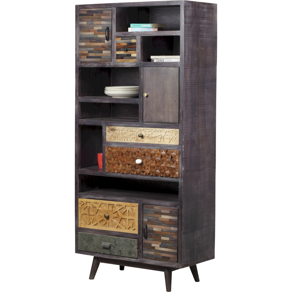 Unsere Regal TOBOL mit ihrer ausdrucksstarken Optik (Unikat-Look) aus mehreren Materialien (Akazie & Mango massiv recycled, MDF, Oberfläche lackiert) vereint Form und Funktion.