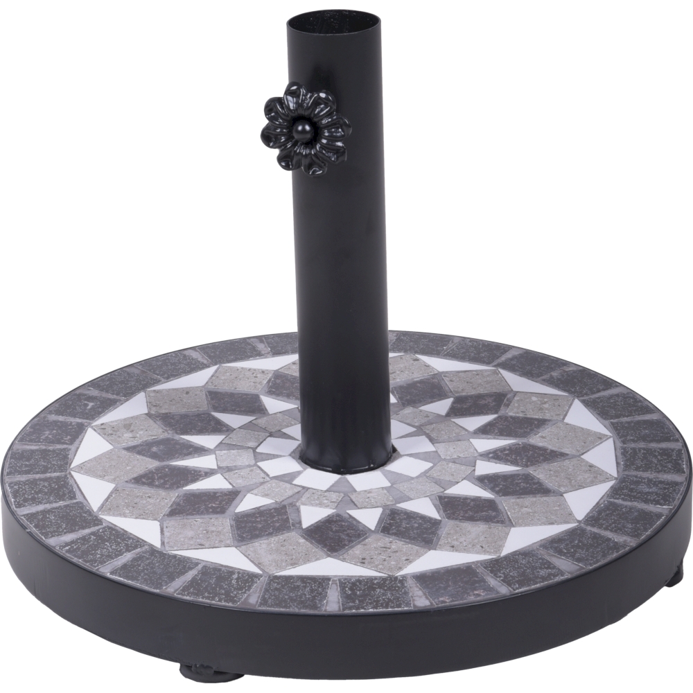 Der Schirmständer JALUA vereint Funktionalität und Ästhetik, um Ihren Outdoor-Bereich stilvoll zu gestalten. Hergestellt aus robustem Mosaik und schwarzem Metall, zeichnet sich dieser Schirmständer durch seine Langlebigkeit und Widerstandsfähigkeit gegenüber den Elementen aus. Er ist speziell für den Einsatz im Freien konzipiert und sorgt für sicheren Halt für Ihren Sonnenschirm.