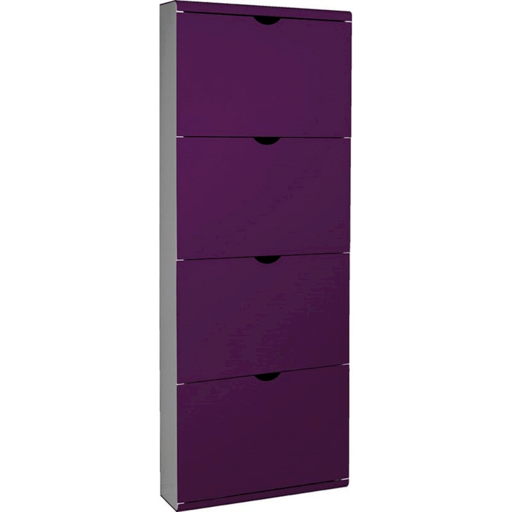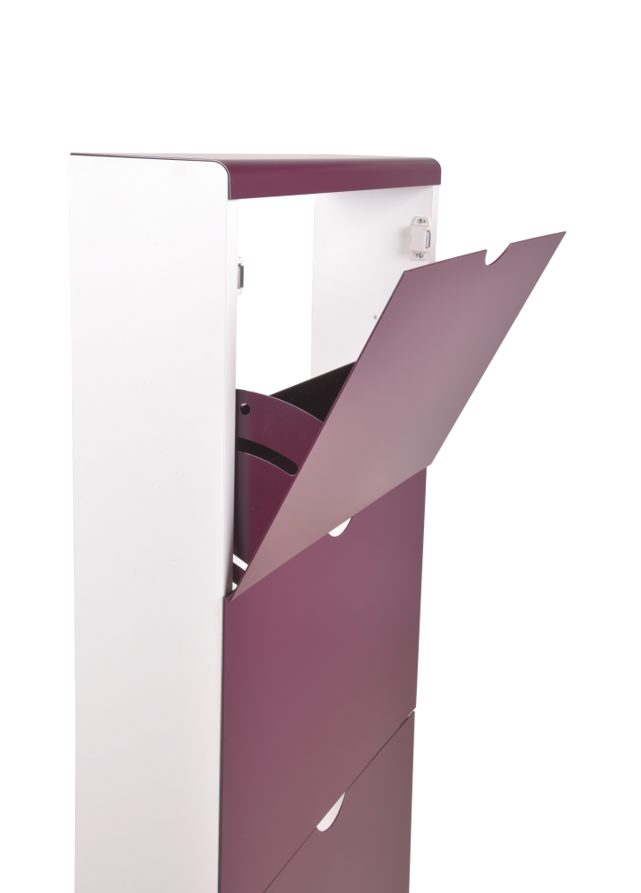 Der Schuhkipper besteht aus strapazierfähigem violettem Stahl und einer weißen Spanplatte, die eine ansprechende Kombination aus Stabilität und Stil bietet. Das robuste Material gewährleistet eine langanhaltende Nutzung und schützt Ihre Schuhe vor Staub und Schmutz.