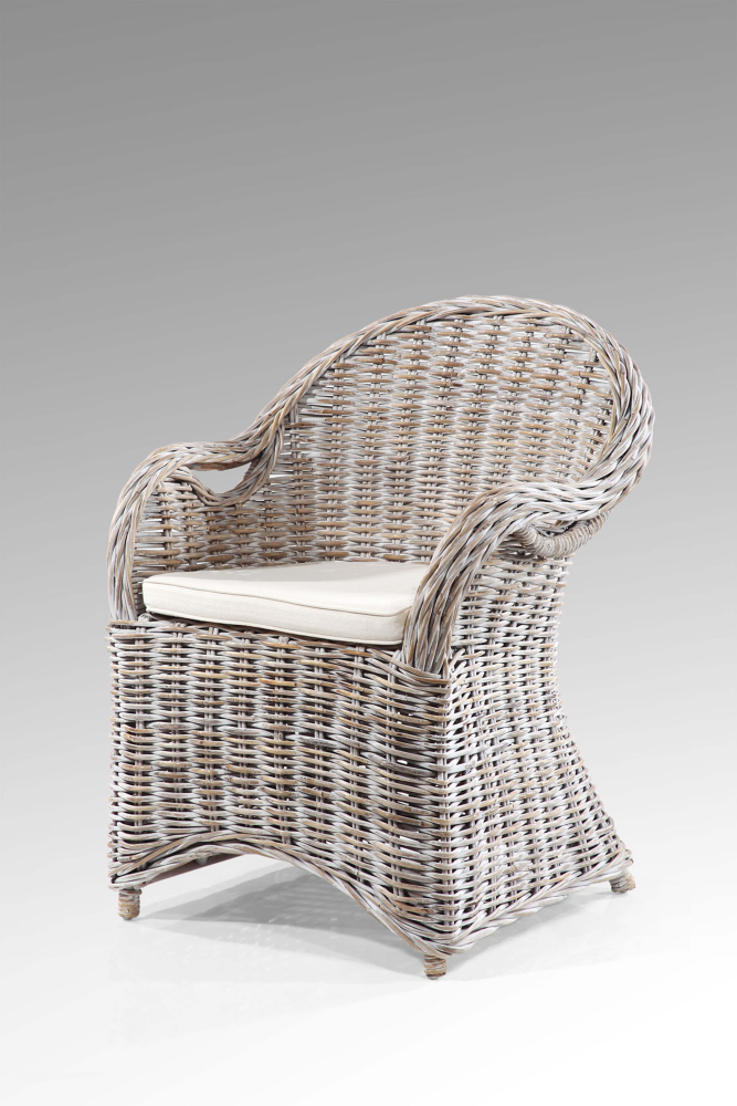 Gemütlichkeit und Natürlichkeit in einem: Unser Naturrattan-Sessel in der Farbe white-wash mit Sitzauflage ist der perfekte Begleiter für entspannte Stunden zuhause.