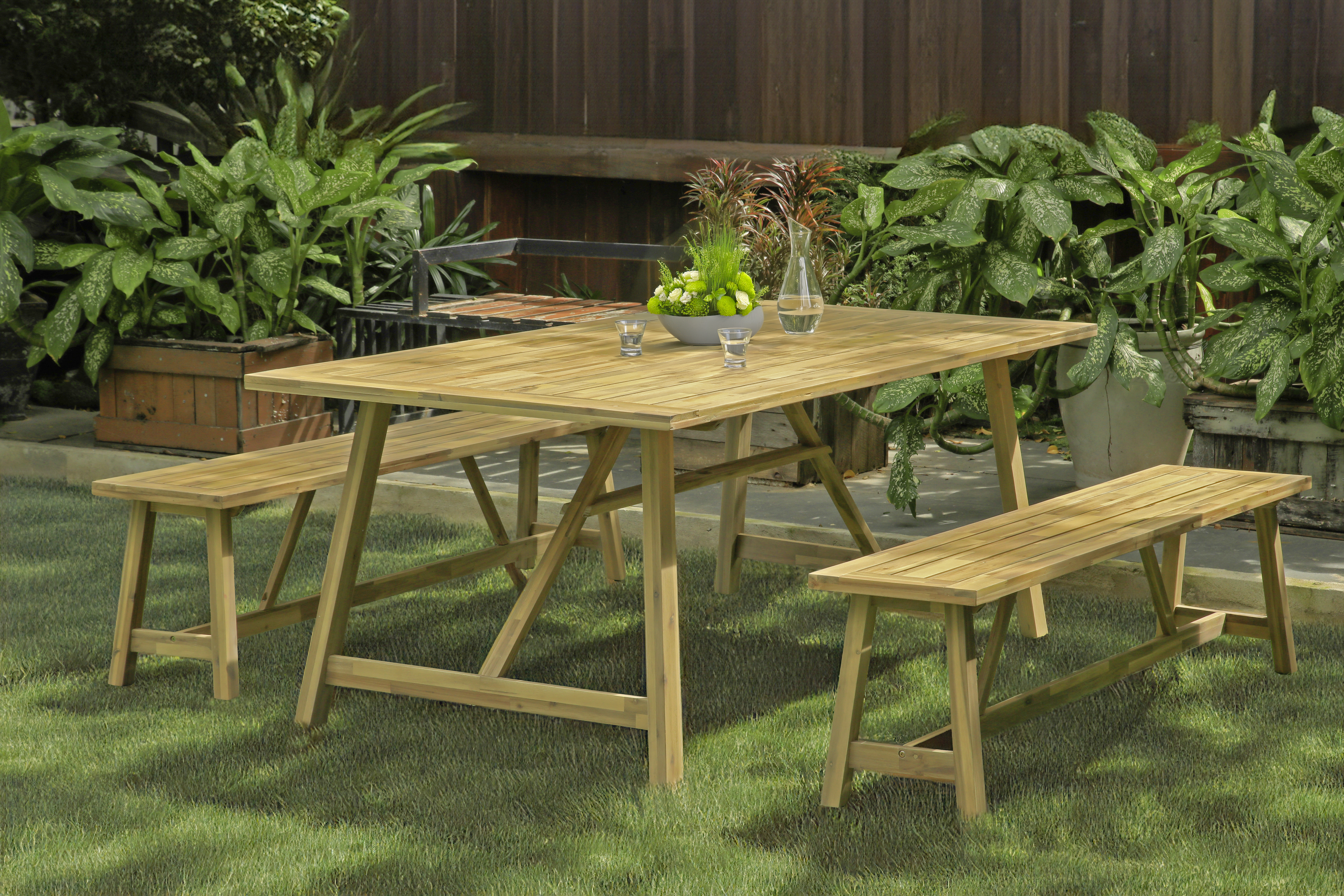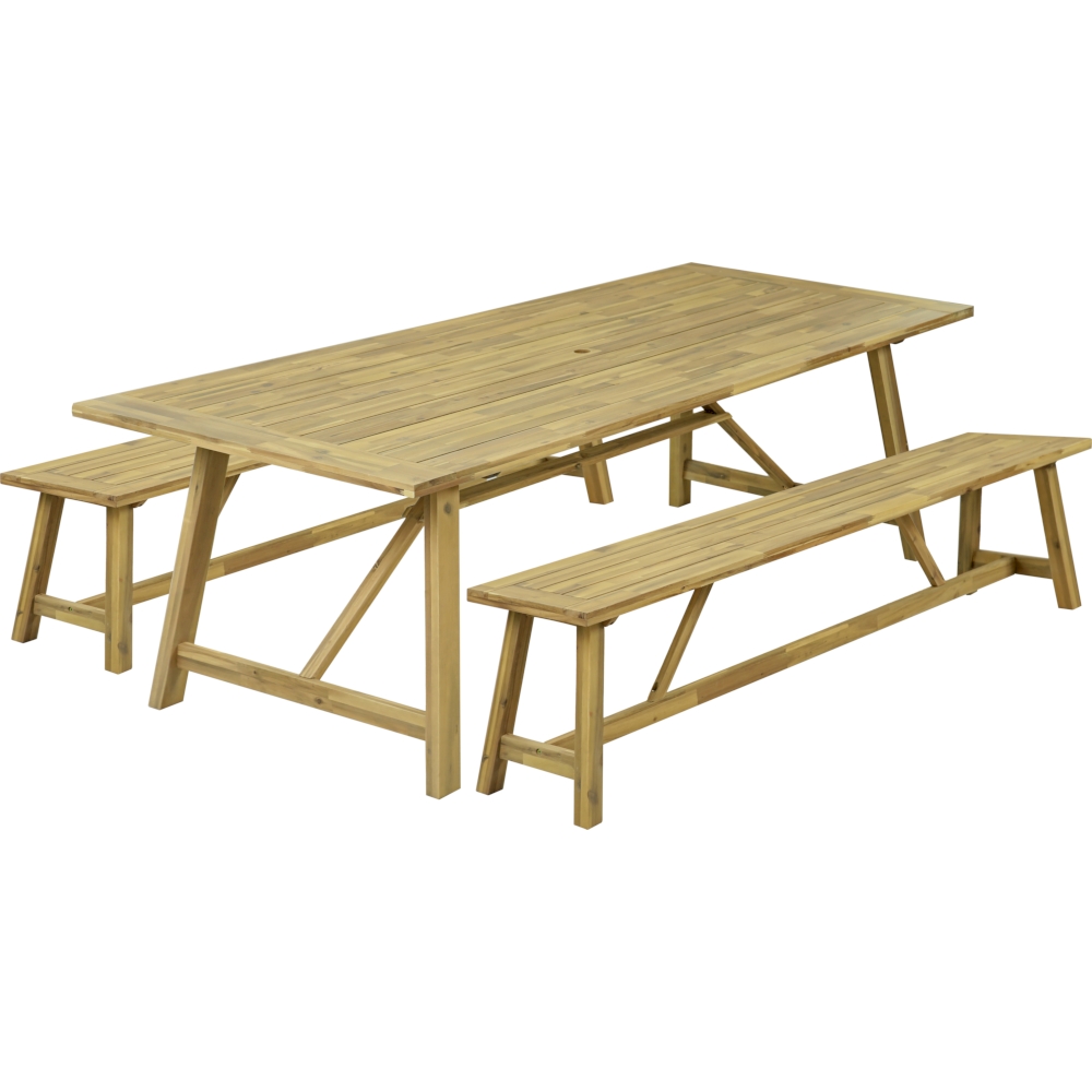 Die robusten Bänke bieten Ihnen und Ihren Gästen bequemen Sitzkomfort und die Tischplatte aus Akazienholz ist stabil und strapazierfähig.