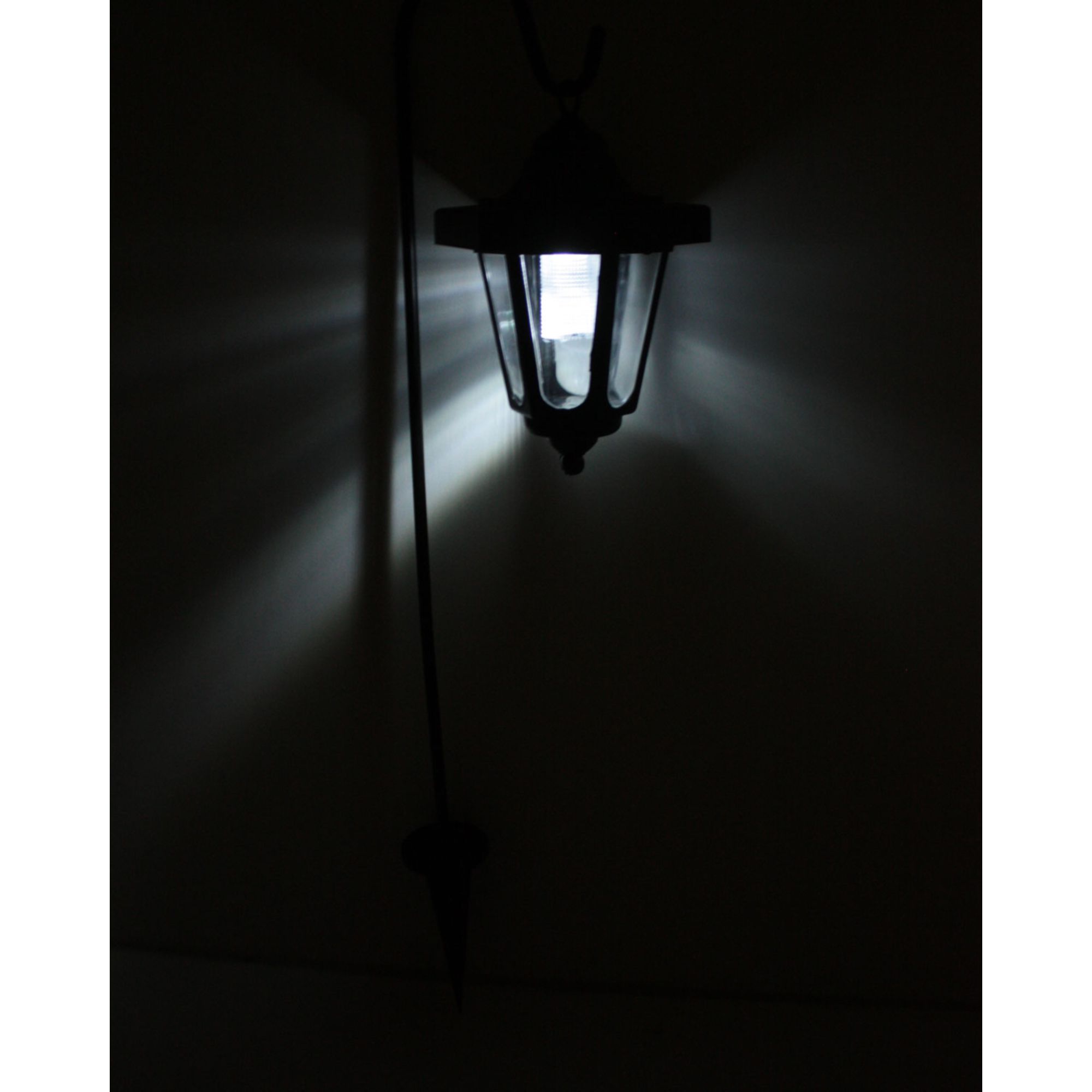 Diese Solar-Laterne ist eine elegante und praktische Beleuchtungsoption für den Außenbereich, gefertigt aus einer Kombination von Kunststoff und Stahl. Sie verfügt über eine leistungsstarke weiße LED, die helles und effizientes Licht erzeugt.