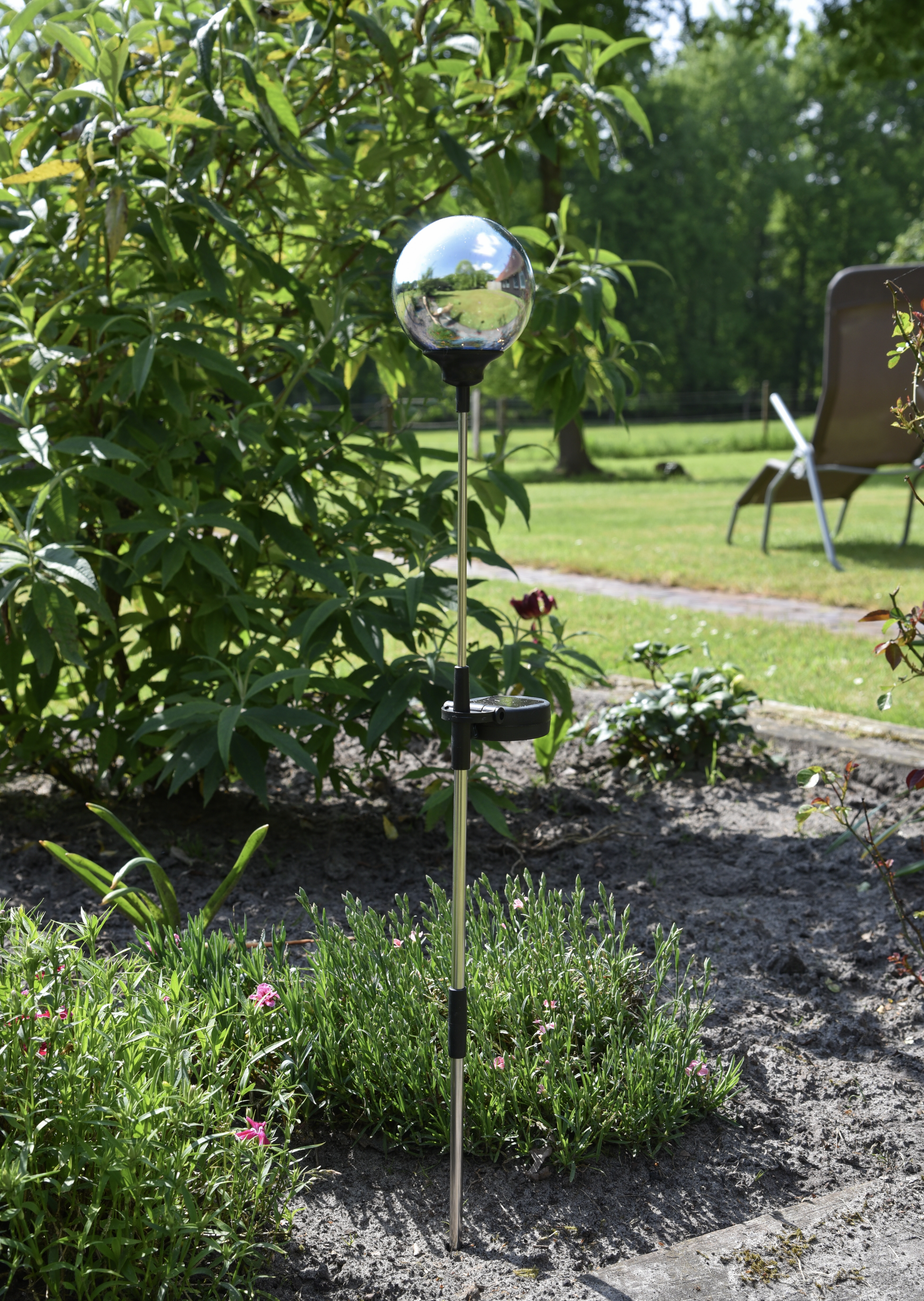 Die Solar-Glaskugel-Leuchte ist eine stilvolle Ergänzung für Ihren Garten, Ihre Terrasse oder Ihren Weg und schafft eine warme Atmosphäre, die Ihren Außenbereich in den Abendstunden in ein angenehmes Licht taucht.