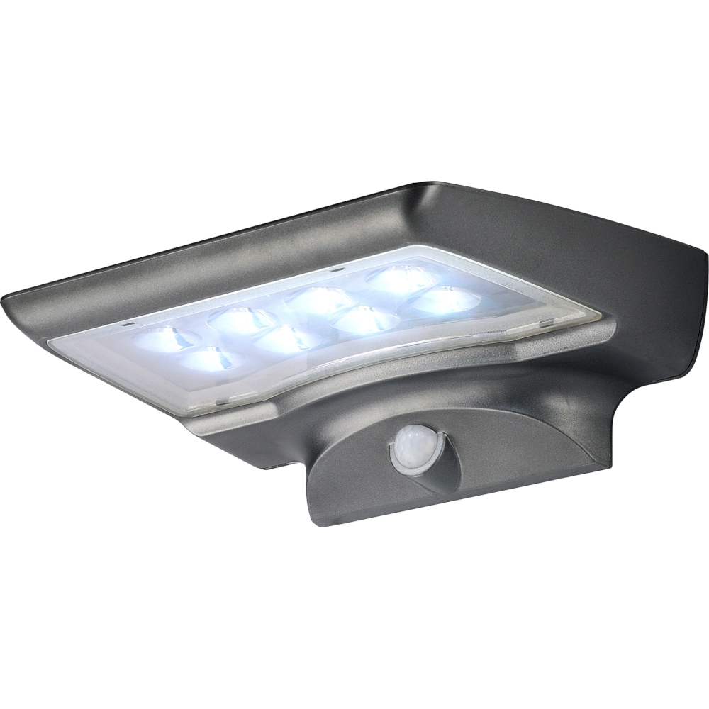Die Solar-Wandleuchte in dunkelgrauem Kunststoff ist eine leistungsstarke und umweltfreundliche Beleuchtungsoption für den Außenbereich. Mit ihren acht weißen LEDs bietet sie helle und zuverlässige Beleuchtung, wann immer Sie sie benötigen. Die integrierte Bewegungssensor-Funktion aktiviert das Licht automatisch, wenn sich jemand in einem Radius von 5-10 Metern bewegt, was zu zusätzlicher Sicherheit und Energieeinsparungen führt.