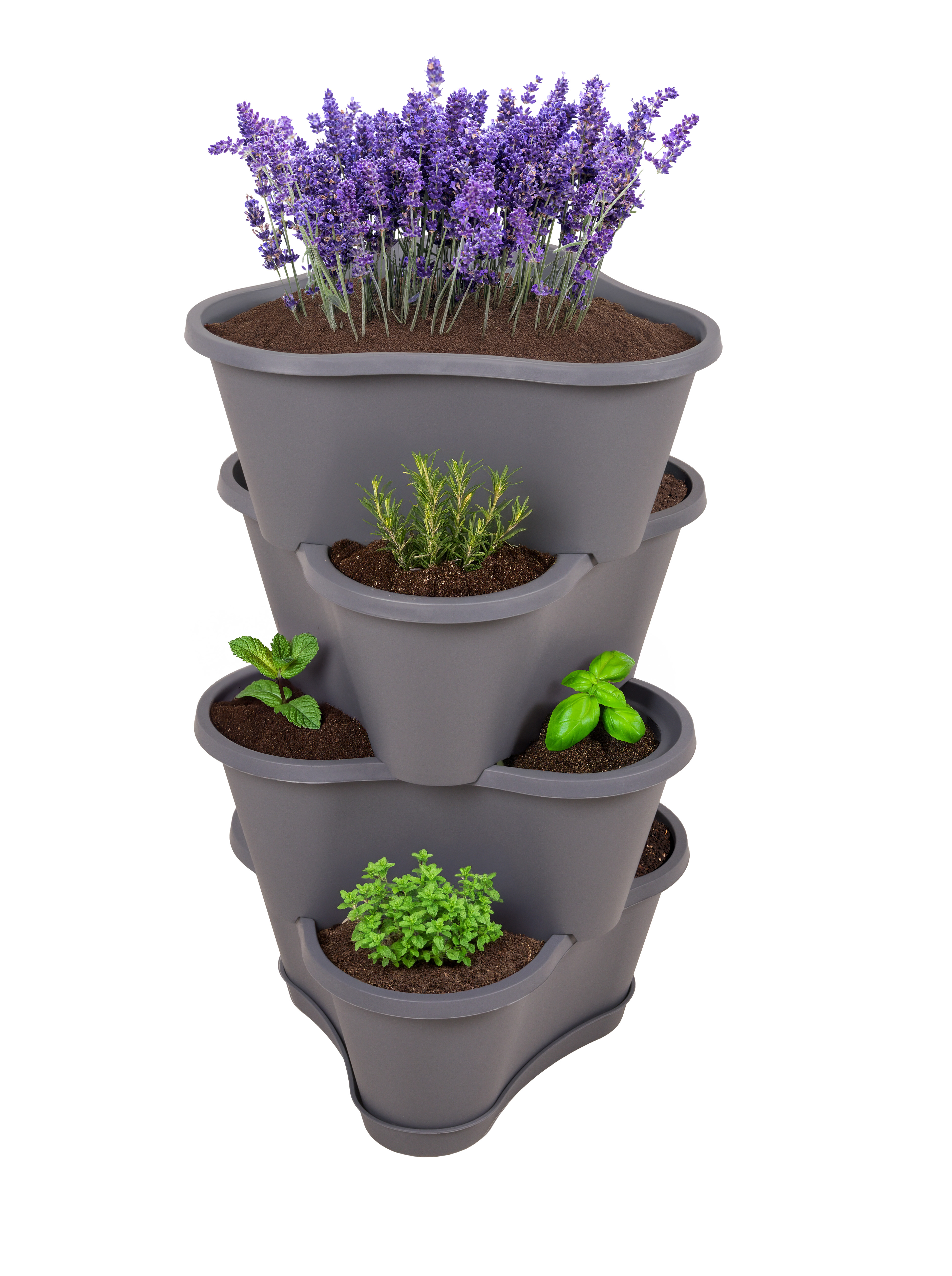 Mehr Grün auf kleinstem Raum! Mit den stapelbaren Pflanzgefäßen erhalten Sie einen platzsparenden Mini-Garten auf Ihrem Balkon. Die Pflanzgefäße lassen sich flexibel kombinieren und bieten praktischen Platz für Kräuter, Blumen oder Gemüse. Perfekt für Balkon, Terrasse und Garten - einfach stapeln, bepflanzen und genießen.