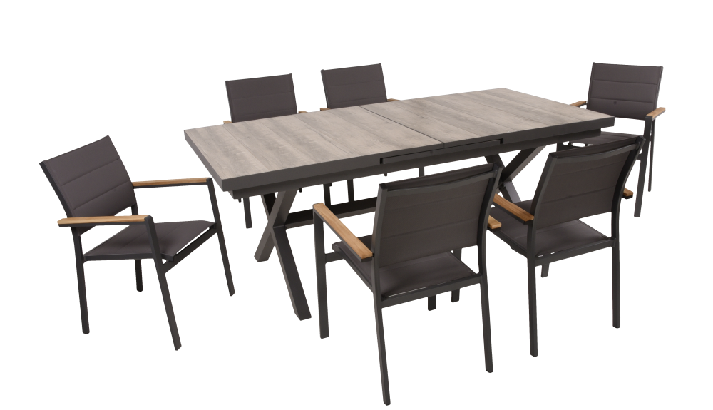 Holz: Teak FSC 100% , Oberfläche: geölt Kunststoff: Polyester 100% , Farbe: dunkelgrau