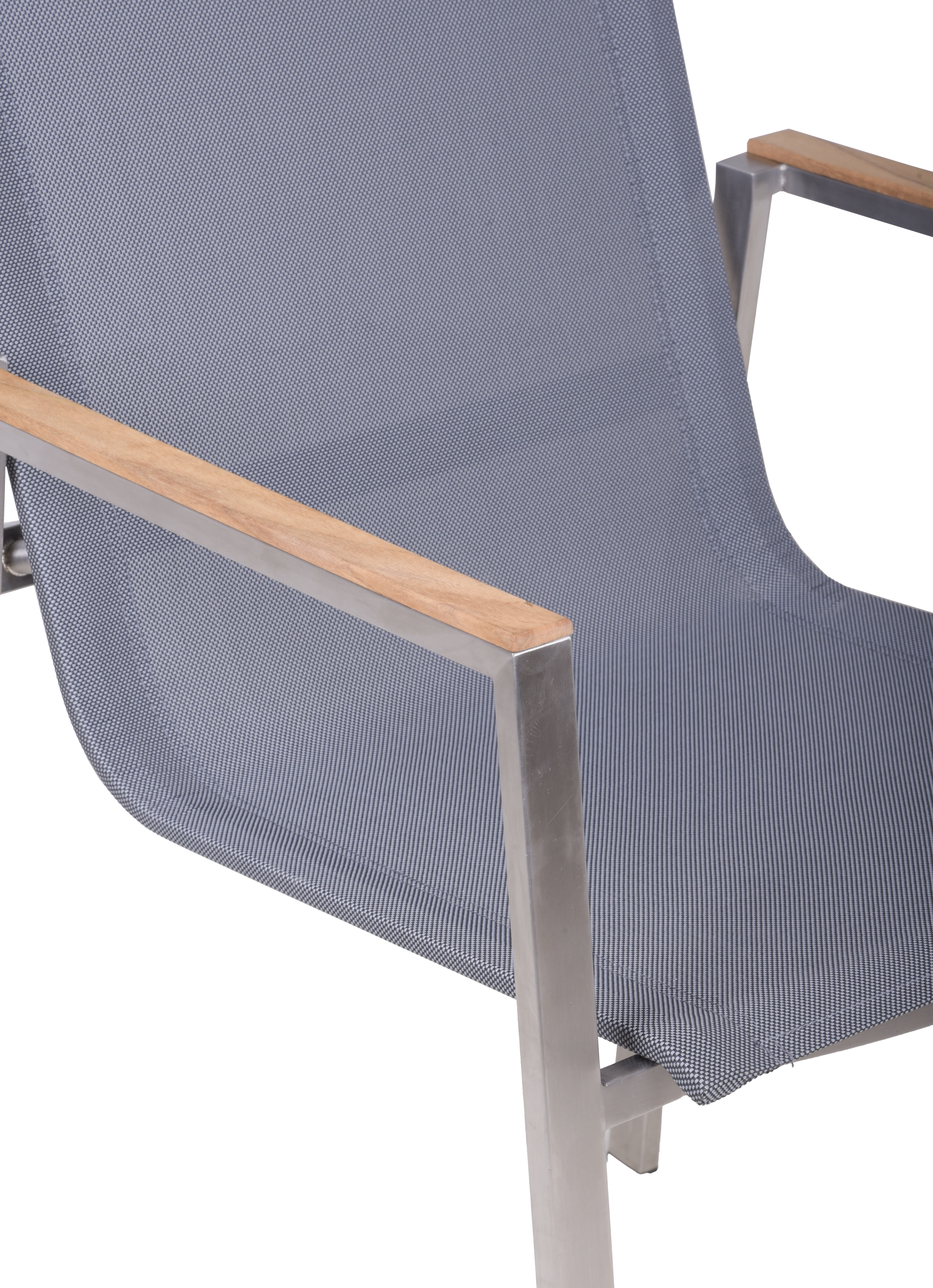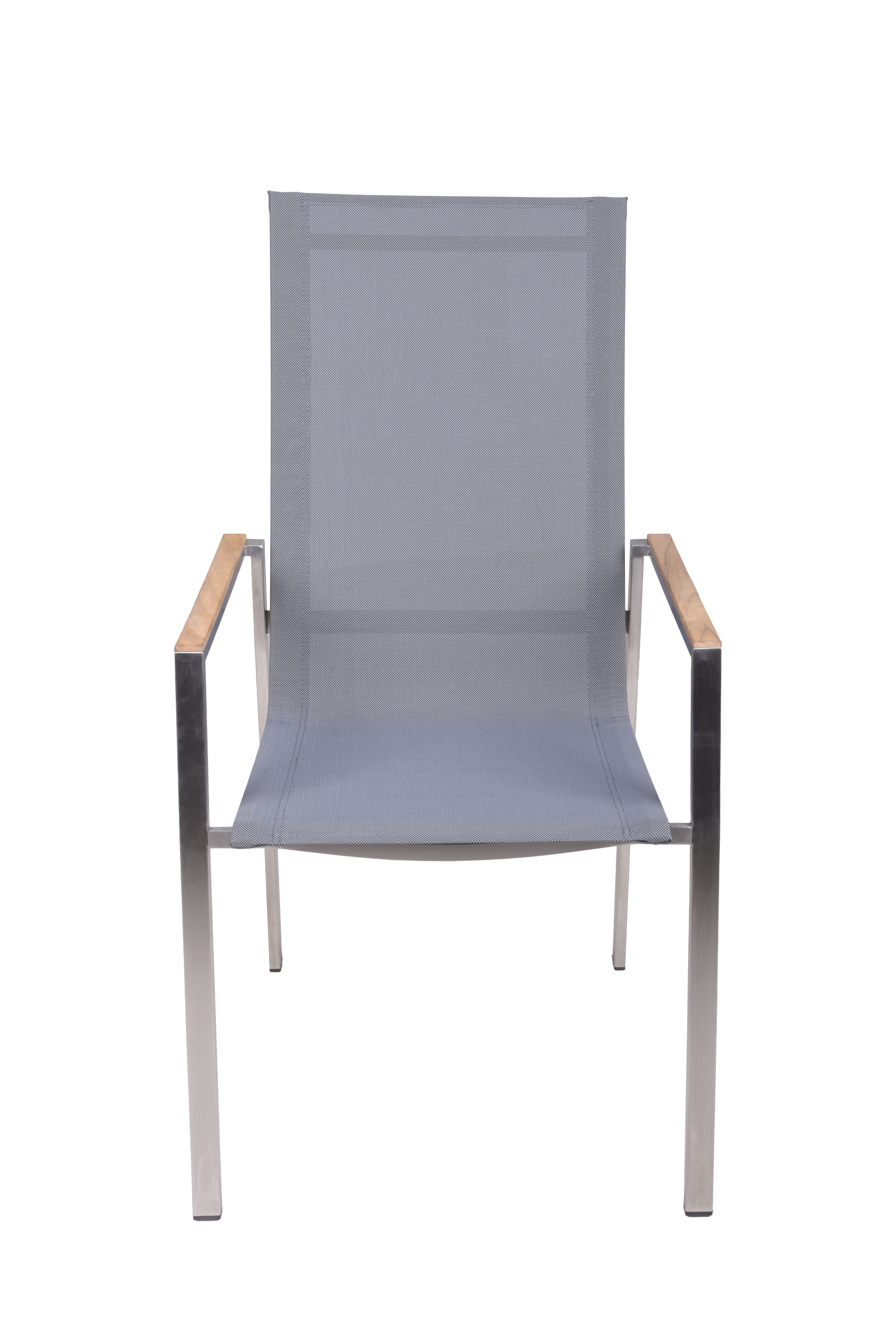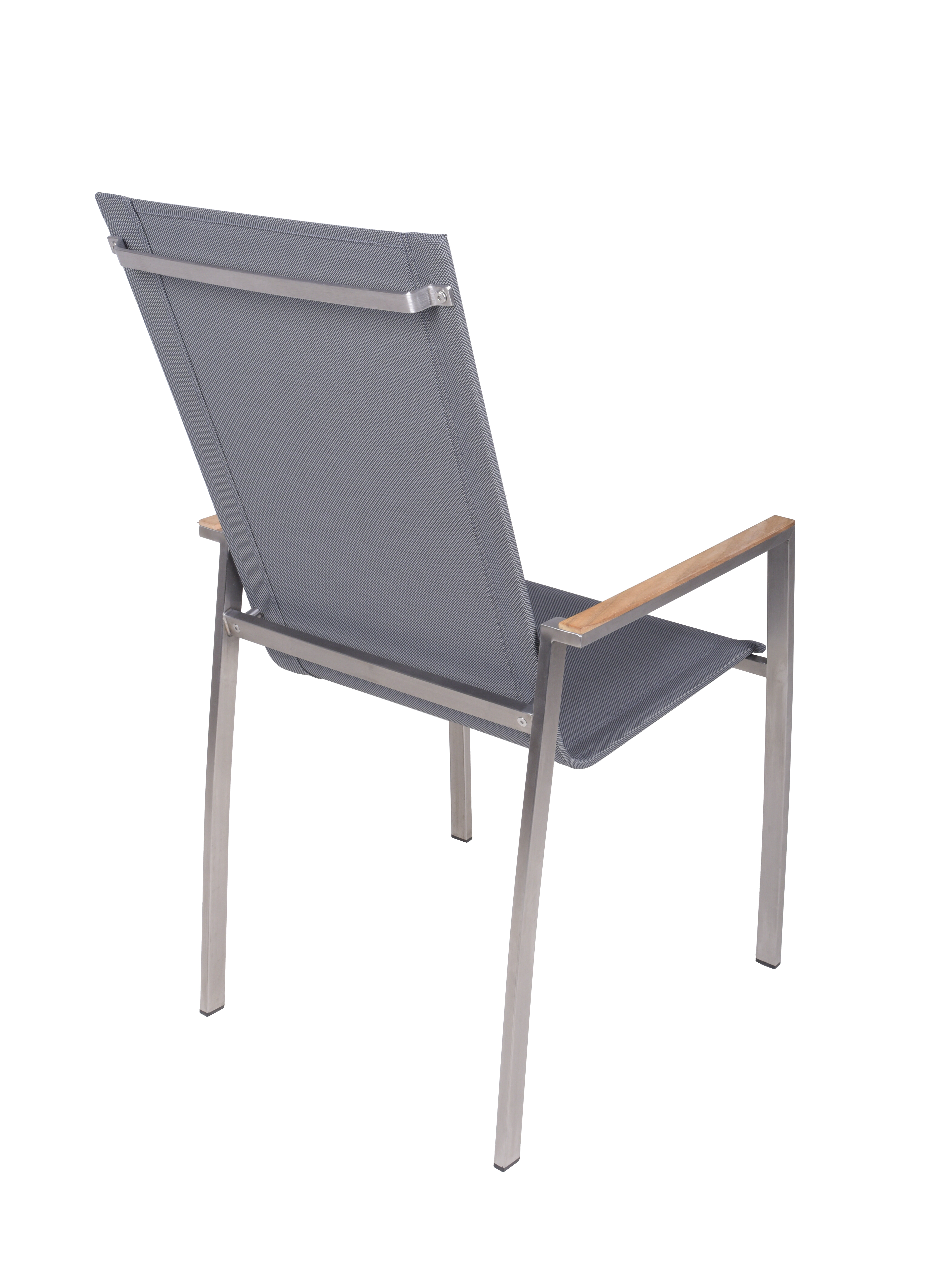 Die Armlehnen aus Teakholz verleihen dem Stuhl eine natürliche Note und sind gleichzeitig bequem.