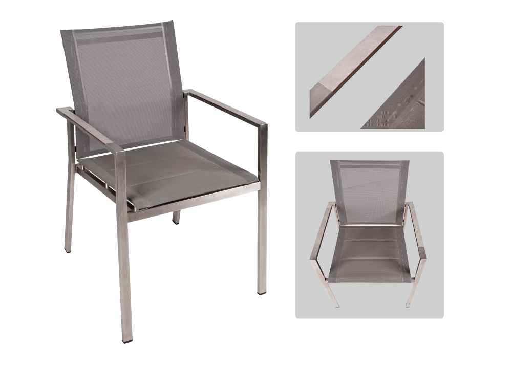 Edelstahl #304 / Kunststoffgewebe 2x2, taupe, Sitzfläche gepolstert