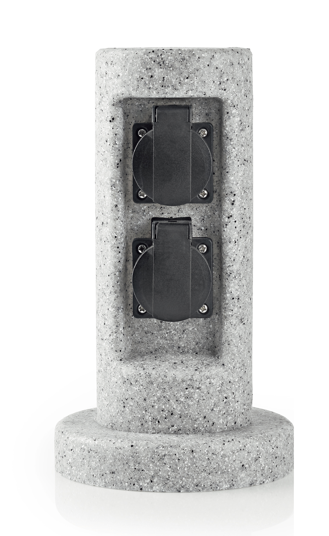 Der Steckdosensäule für den Outdoor-Einsatz ist ein praktisches und dekoratives Element für Ihren Garten oder Außenbereich. Das Gehäuse ist aus strapazierfähigem Kunststoff in einer attraktiven Steinoptik gefertigt, was ihm ein naturverbundenes Aussehen verleiht.