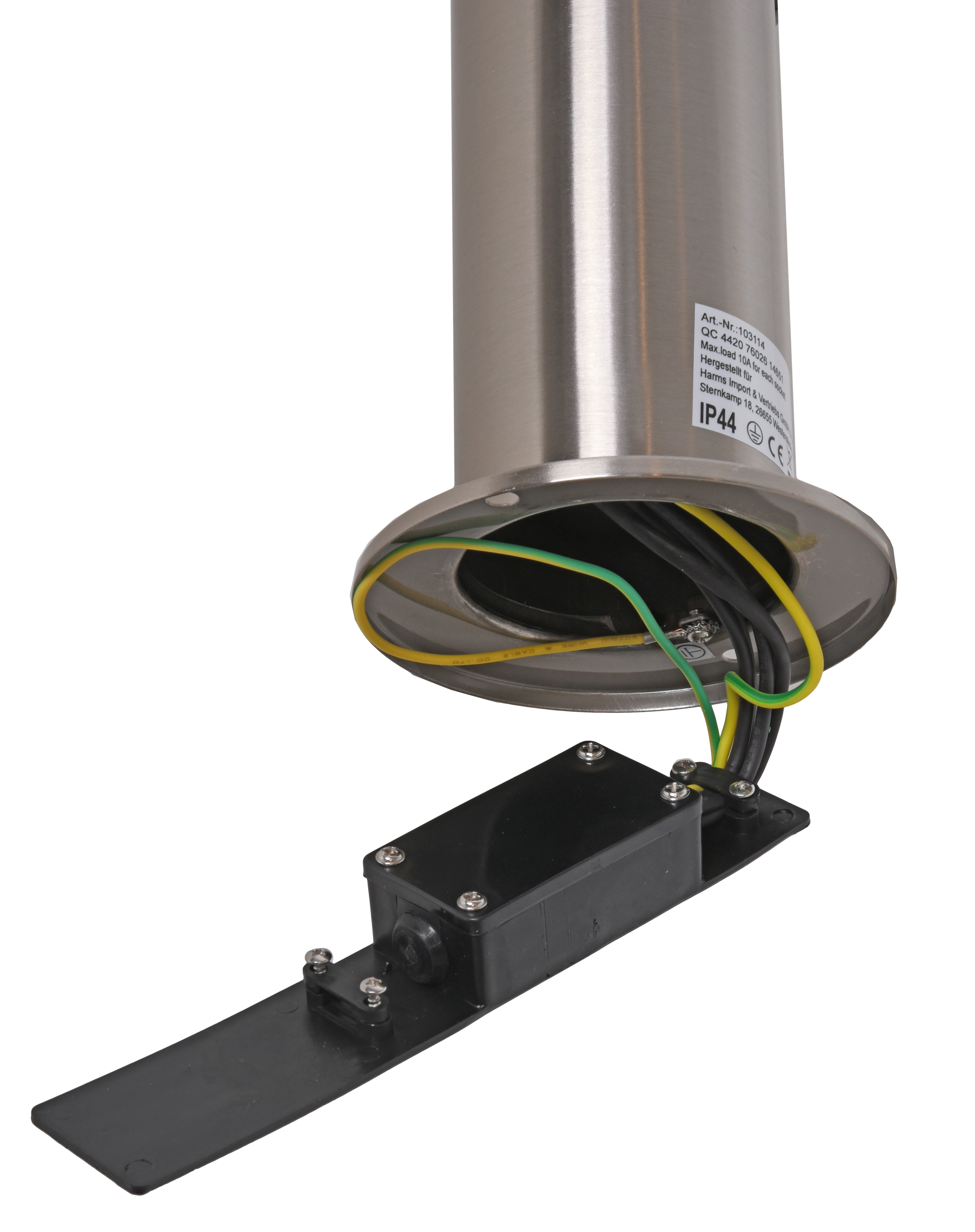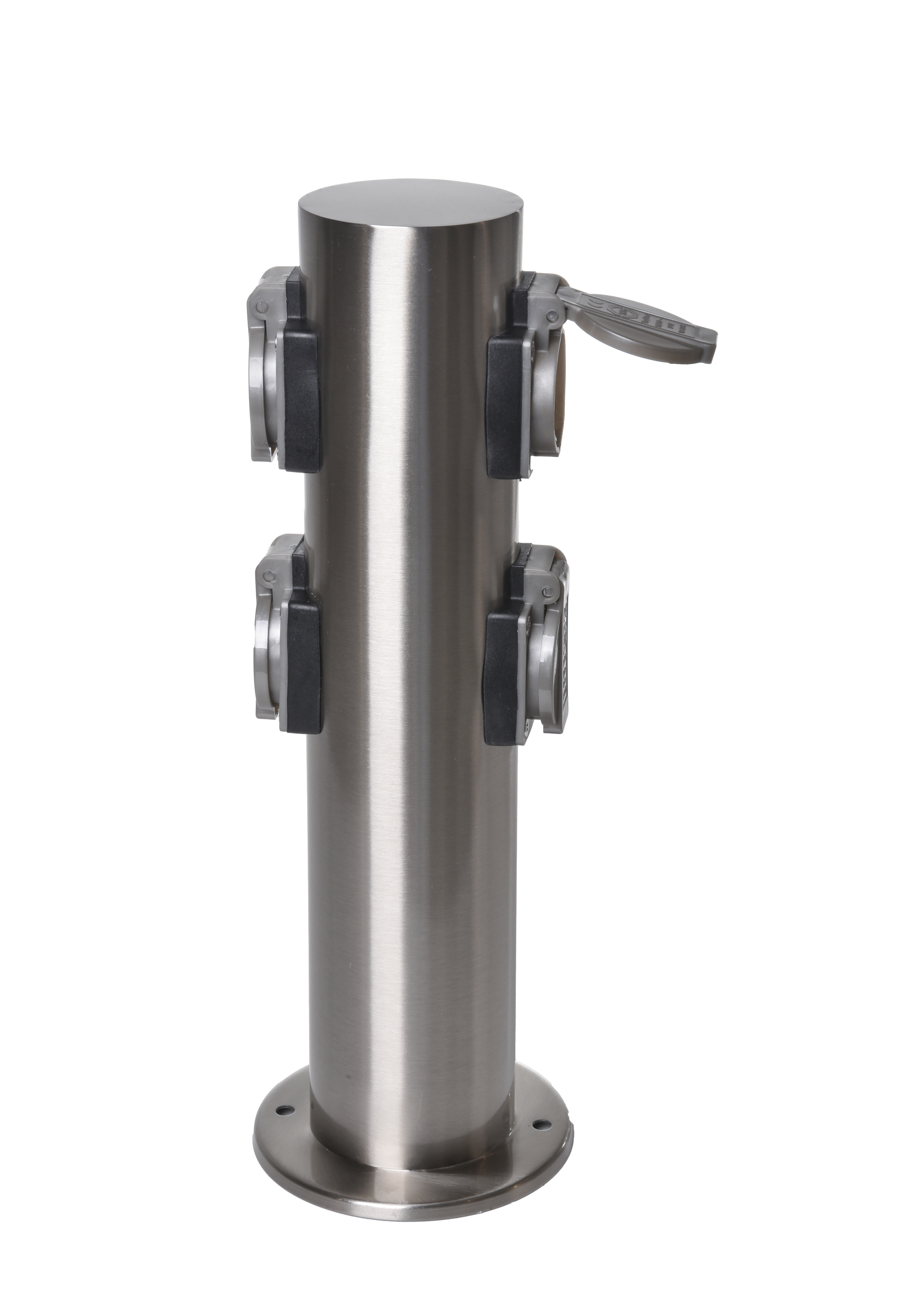 Infotext 1: runder Edelstahlkörper, inkl. 2 Steckdosen