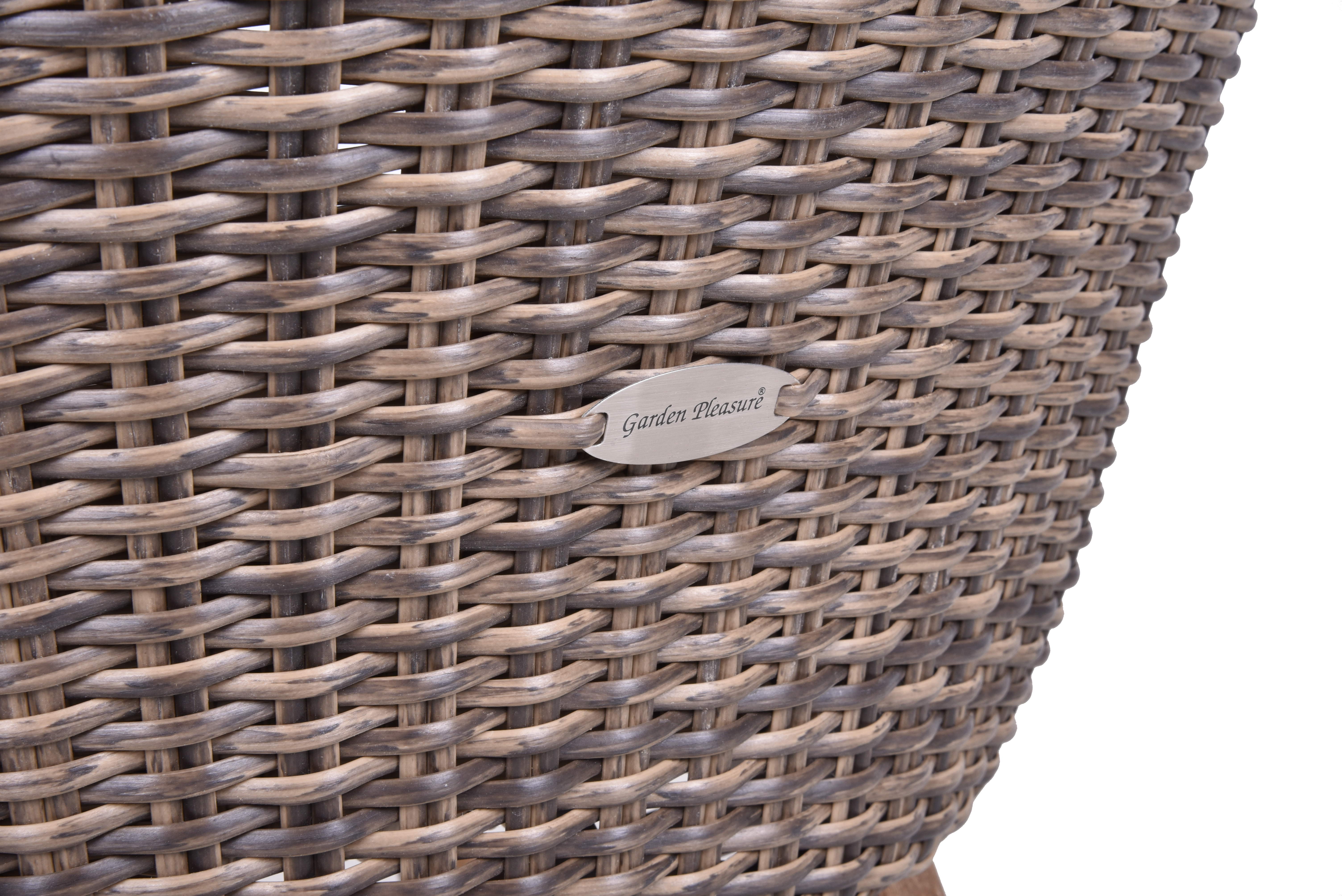 Holz: Akazie , Oberfläche: brushed wash , Farbe: pfefferbraun Kunststoff: Kunststoffgeflecht , Farbe: dunkelbraun