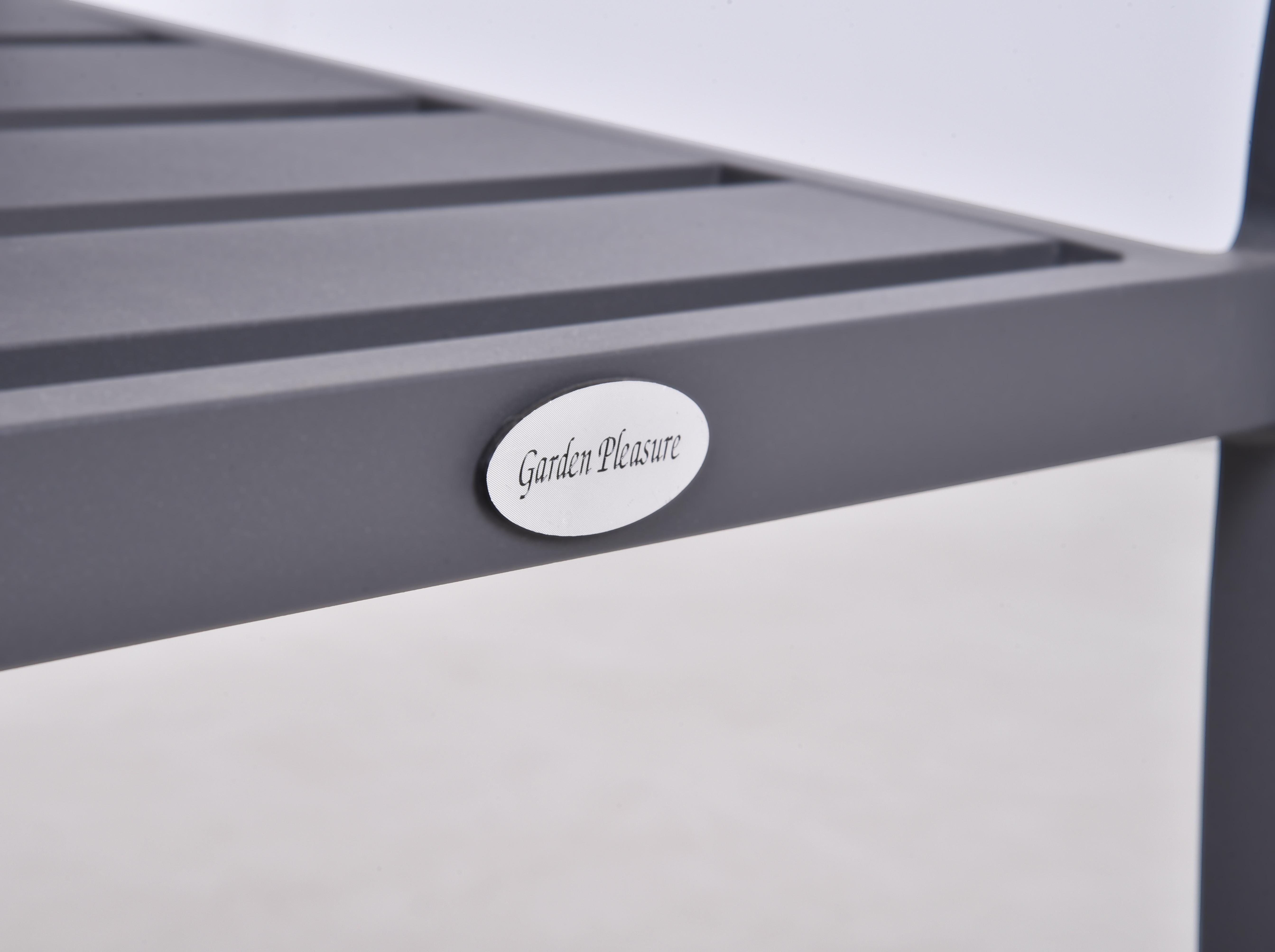 Der Stuhl "TREVISO" in eleganter Anthrazit-Pulverbeschichtung und Aluminium-Gestell bietet eine optimale Kombination aus Stil und Funktionalität.