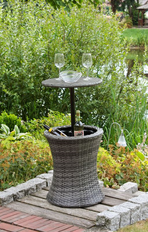 Der Tisch MUMBAI bietet nicht nur eine großzügige Tischplatte, sondern überrascht auch mit einem eingebauten Getränkekühler, der zum perfekten Begleiter für Ihre Gartenpartys wird.