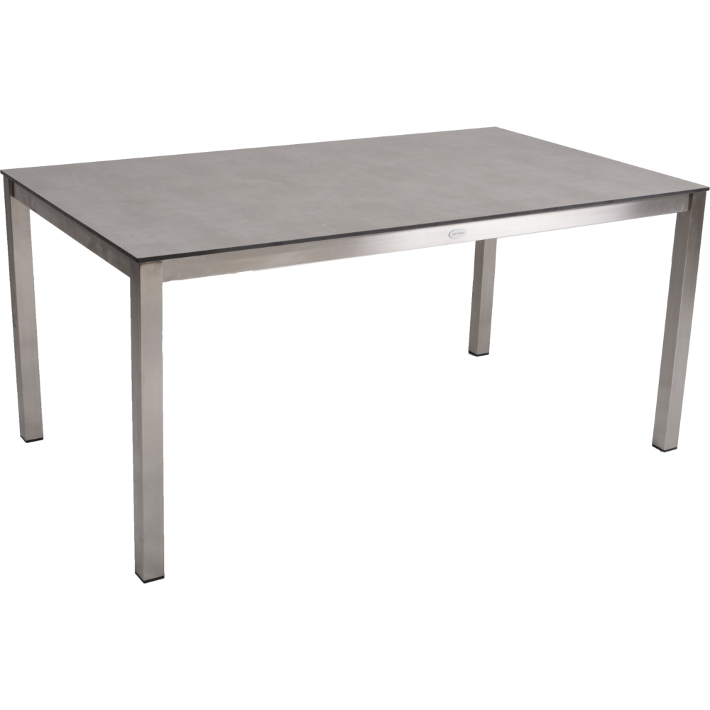 Das Gestell aus gebürstetem Edelstahl #304 sorgt für Stabilität und eine edle Optik. In Kombination mit der grauen Tischplatte aus High-Pressure Laminate (HPL) entsteht ein moderner Esstisch, der durch klare Linien und hochwertige Verarbeitung überzeugt.