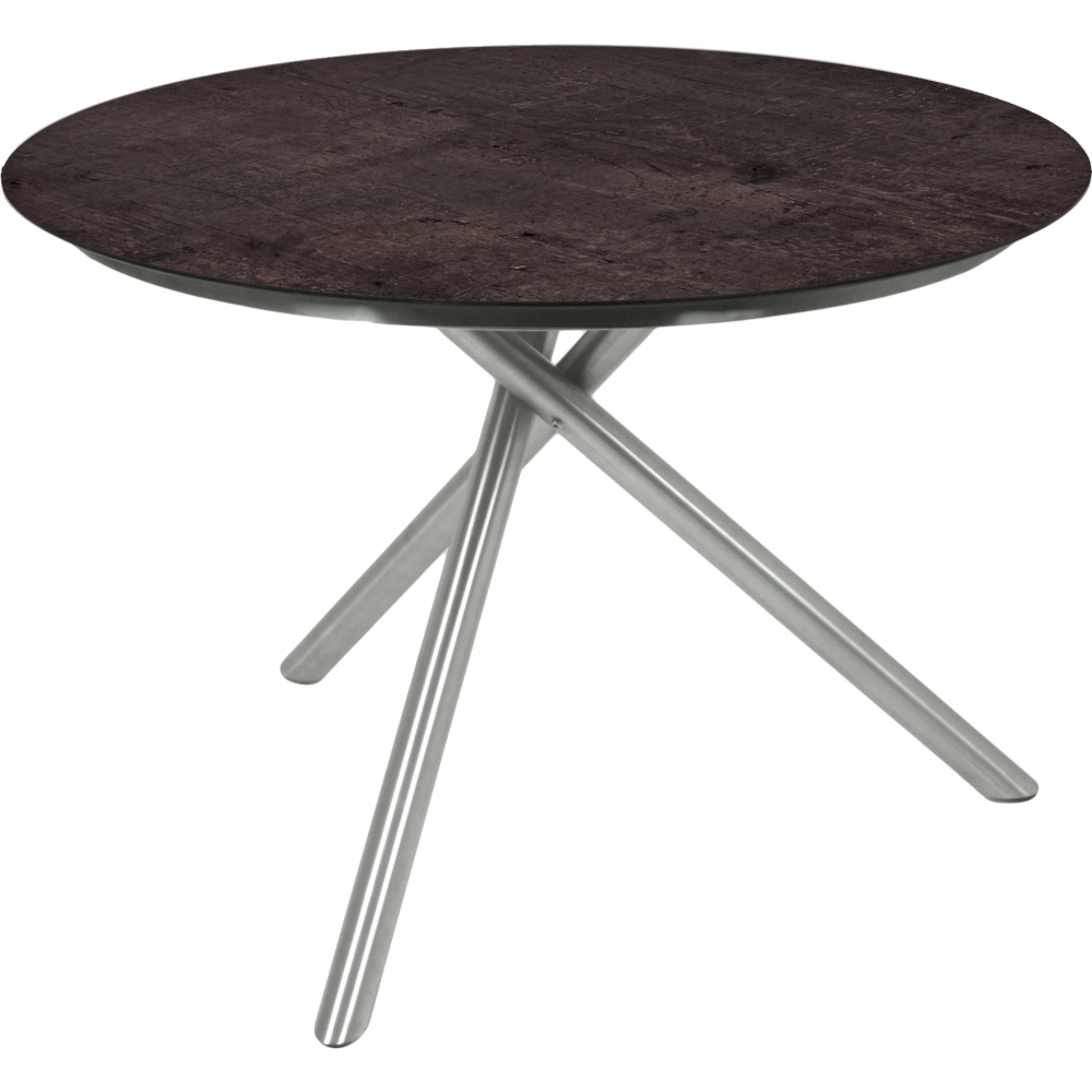 Die Kombination aus Edelstahl und der dunklen Tischplatte verleiht diesem Tisch ein zeitgemäßes und elegantes Erscheinungsbild.