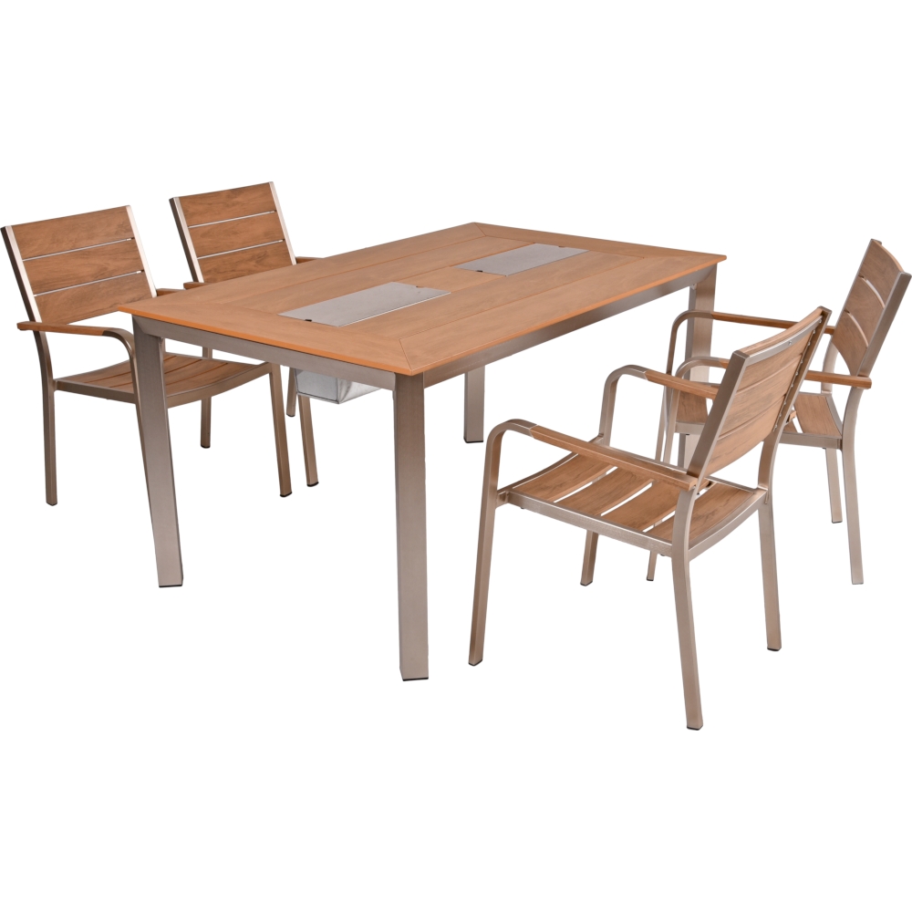 Die Tischgruppe FLORENCE mit Stapelstühlen ist eine elegante und funktionale Lösung, um Ihren Außenbereich stilvoll und komfortabel zu gestalten. Dieses Set besteht aus einem Tisch FLORENCE mit zwei integrierten Eisbehältern und vier Stapelstühlen FLORENCE.