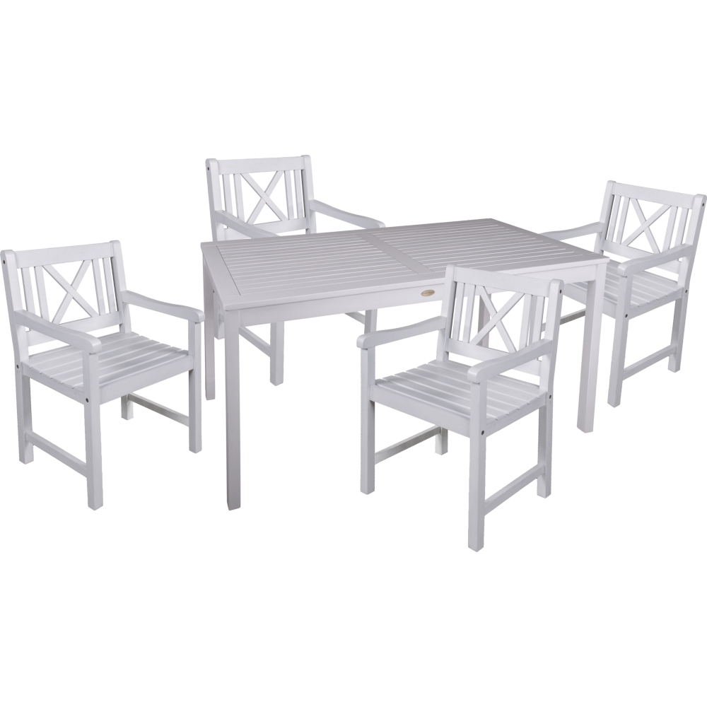 Die Gruppe umfasst auch vier Armstühle MALMÖ, die ebenfalls aus Eukalyptusholz gefertigt und im gleichen white washed Finish gestaltet sind. Diese Stühle bieten Komfort und Stil und sind perfekt auf den Tisch abgestimmt. Dieses Set ist ideal für gesellige Stunden im Freien mit Familie und Freunden. Die Tischgruppe MALMÖ vereint hochwertige Materialien und ansprechendes Design, um Ihnen ein stilvolles und funktionales Outdoor-Möbelset zu bieten. Genießen Sie Ihre Mahlzeiten und entspannten Momente im Freien mit diesem erstklassigen Ensemble.